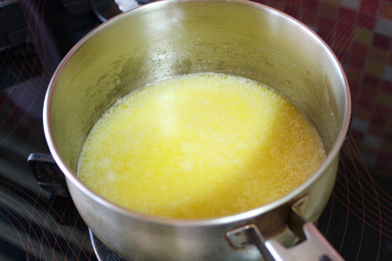 1. 분량의 버터를 소스팬에 넣고 약불에서 천천히 녹여준다.