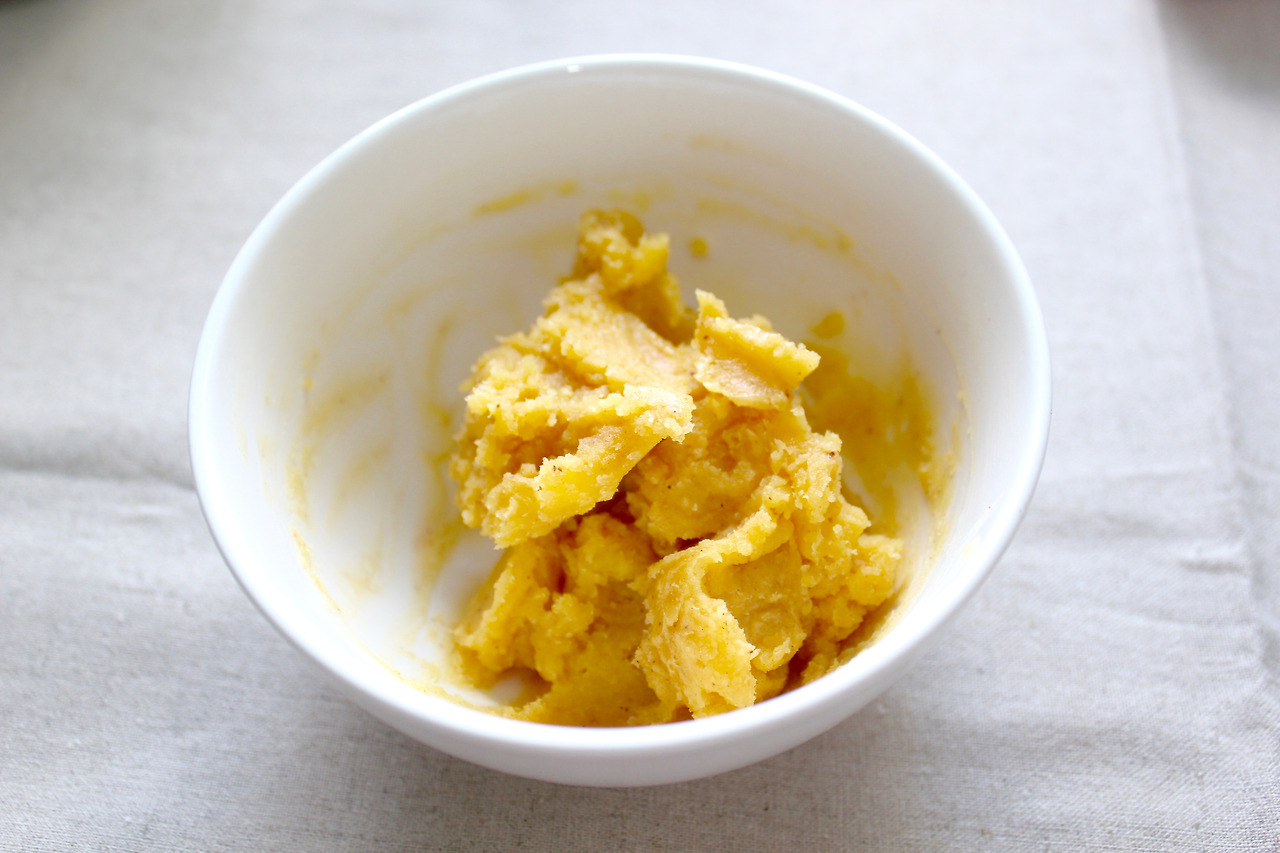 3. 녹인 버터를 냉장고에 넣고 실온 버터 상태의 질감이 나올 때까지 굳힌다. 이때, 5분 정도마다 고르게 섞어주며 확인한다.