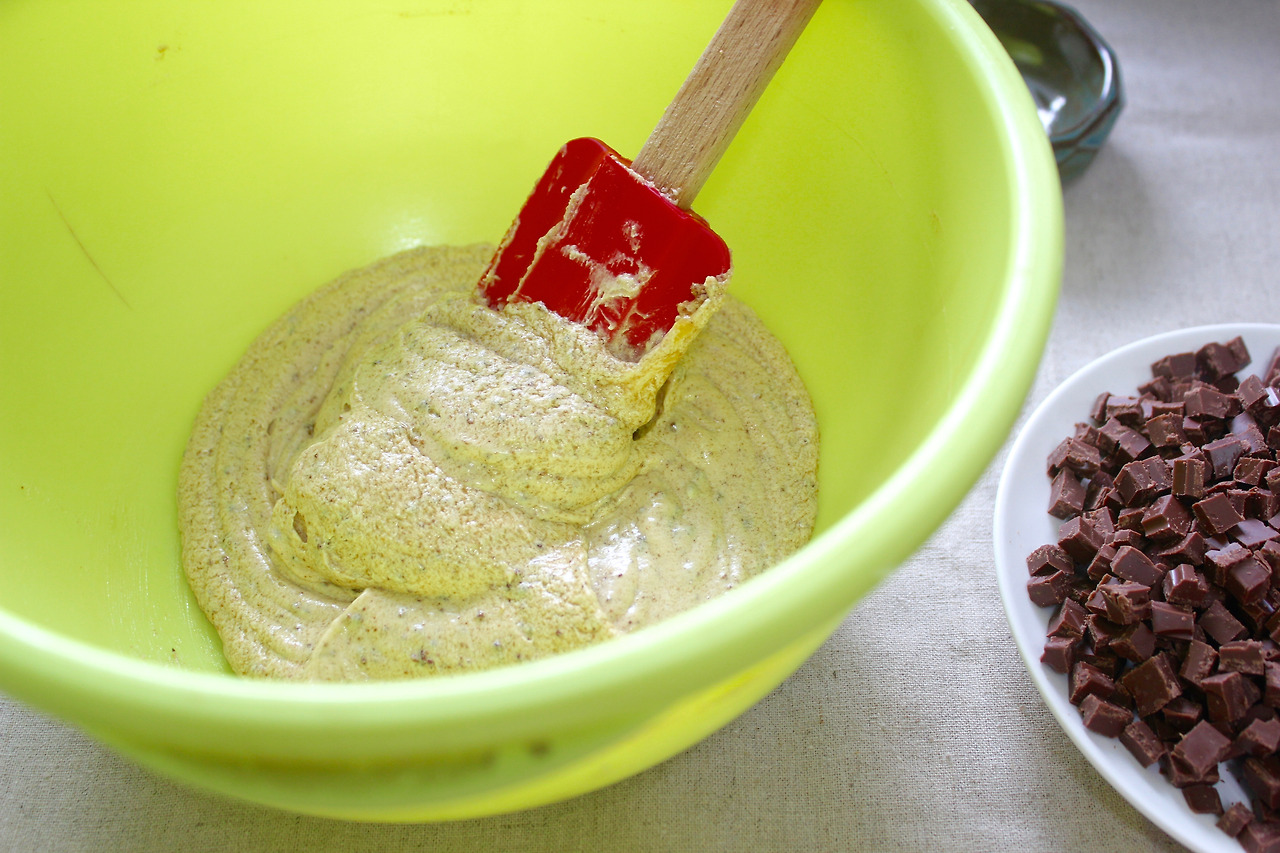 8. 가루가 보이지 않으면 썰어둔 초콜릿을 넣고 마지막으로 섞어준다.