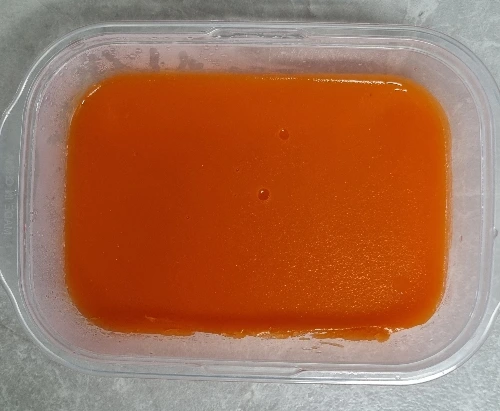 6. 5분 정도 끓여 농도가 진해진 당근묵을 용기에 담는다.