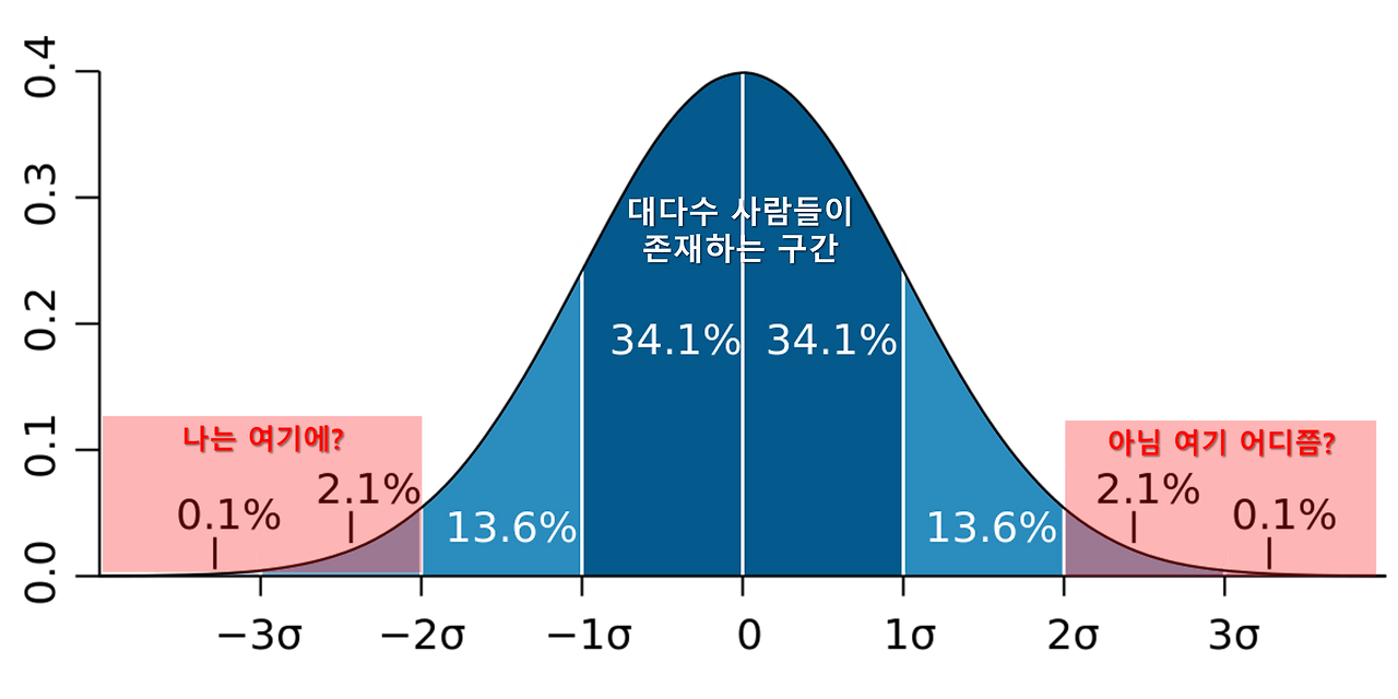 표준분포곡선에서 표준편차범위 밖에 존재하는 마이너