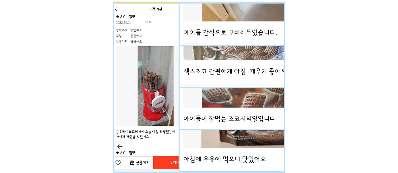 아직도 리뷰에는 아이들을 위해 사준 스스로를 칭찬하는 내용이 올라온다. 이제 어른들은 다이어트와 건강을 위해 과자를 참기 시작했다. 그런데 왜 아이들에게는 스스로도 절제하는 과자를 밥상위에 올려 후하게 급식시키고 있을까.