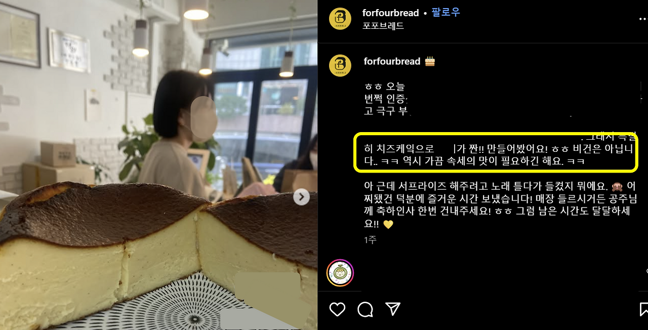 포포브레드 사장님이 치즈 케잌을 구운 인증샷을 인스타에 올리며 "가끔 속세의 맛이 필요하다"고 했다. 내 이목을 끈 것은 비건빵집에서 구운 치즈케잌이 아니라 사장님은 자신이 만든 비건 빵이 속세의 맛이 아니라고 여기는 표현이다.