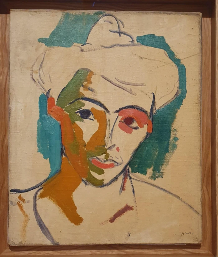 트램을 타고 Arenes/Musee Matisse에서 내려 공원을 걷다 보니 올리브 나무 사이로 선홍빛 건물이 눈에 들어온다. 마티스 뮤지엄이다. 지하 매표소 '꽃과 과일'과 브론즈 작품을 지나 계단을 올라오니 그의 드로잉 작품과 편지, 회화작품이 전시되어있다. 그중에서 '마티스 부인의 초상 Portrait de Madame Matisse'이 나를 사로잡았다. 주황과 초록색의 '마티스 부인의 초상'은 알고 있었지만 이 그림은 또 다른 느낌이었다.