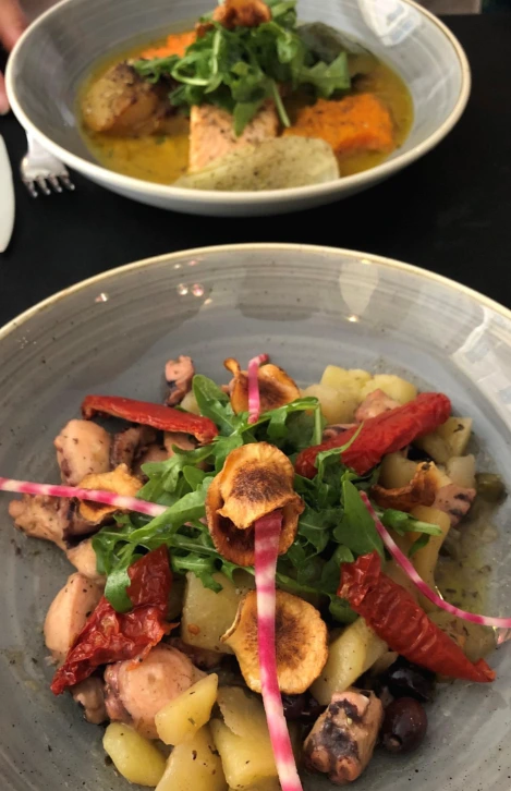 니스의 문어요리는 화려했다. 루콜라와 야채가 향을 돋우고, 붉은색 초록색 생 올리브가 신의 한 수였다.