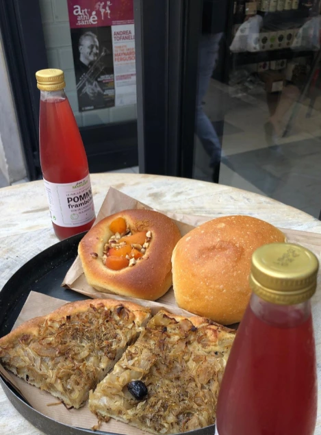 플랫 브레드 위에 양파가 가득하다. 올리브가 하나 덤으로! 특별한 치즈도 없이 양파일 뿐인데 이렇게 맛있을 수 있을까! 양파를 볶아서 올린 듯했다. 아니면 플랫 브레드에 비법이 숨어 있을지도 모르겠다. 딸과 나는 이 빵을 '양파빵'으로 이름 지었고 다음날 아침, 파리로 돌아가기 전, 다시 가게로 뛰어와 '양파빵'을 챙겼다. 6시간 기차여행 중 소중한 식량이었다. 프랑스 여행에서 돌아와 이 맛을 잊지 못해 우리나라 빵집에서 찾아보았지만 양파를 마요네즈에 버무려 치즈를 얹은 빵이나 토마토소스와 함께 구운 빵을 보았을 뿐이다.