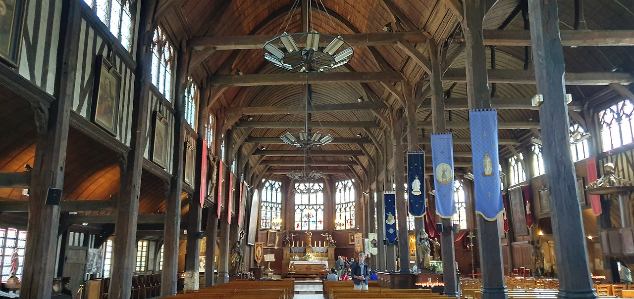 바닷가 중세마을 옹플뢰르에서 내게 가장 인상적인 것은 생트 카트린 성당이다. 프랑스에서 가장 오래된 목조 건물의 성당은 천장과 의자 장식품 등이 모두 나무로 꾸며져 있다. 옹플뢰르에서 우리 버스 사람들은 제각기 맛있는 바닷가 식당과 카페를 찾고 있었지만 나는 오래된 성당의 나무의자에 앉아 있었다.