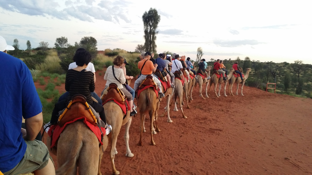 새벽 4시 30분에 일어나 작은 버스를 타고 낙타 농장에 도착했다. 낙타들이 얌전히 줄지어 앉아있다. 딸과 나는 이름이 'Pete'인 귀여운 낙타에 올랐다. 우리를 태운 낙타가 일어나자 생각보다 키가 컸고 롤러코스터를 타는 느낌이었다. 낙타는 속눈썹이 길고 아주 귀여웠고 사뿐사뿐 내딛는 발바닥은 마카다미아 모양이었다. 딸과 나의 무게로 예쁜 낙타가 힘들지 않을까 걱정이 되었다. 낙타를 타고 일출을 보는 일이 마음 편하지 않았다. 낙타들이 줄지어 걷고 멀리 붉은 바위가 붉게 물들기 시작했다. 일렬로 선 낙타 위에서 일출을 보았다. 농장으로 돌아와 빵과 베리 잼, 주스로 아침을 먹고 숙소로 돌아와 짐을 챙겼다.