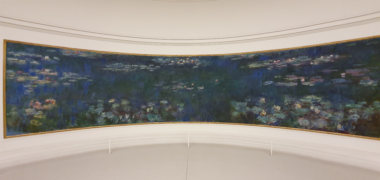 우리가 머물고 있는 숙소는 딸이 airbnb에서 예약한 원룸이다. 숙소는 딸이 경비를 지불해서 무조건 착한 가격을 골랐다. 24 Rue Poissonniere에서 오랑주리까지 N16과 N11을 갈아타고 콩고드 광장에서 내려 광장을 가로질러 걸었다. 이른 시간이고 광장을 내달리는 차들 사이로 이집트 오벨리스크가 외롭게 서 있다. 오픈 시간 전에 도착해서 미술관이 열리고 바로 들어갔다. 모네의 수련! 타원형의 벽을 따라 이어지는 수련. 표현할 수 없는 감동을 느낀다.