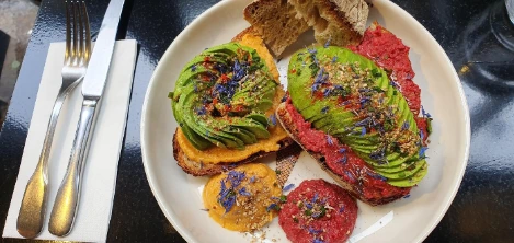 (Tartine Rose d'Avocat et duo de Houmous maison Bio)