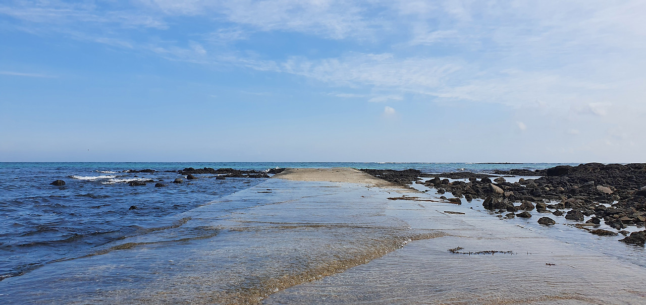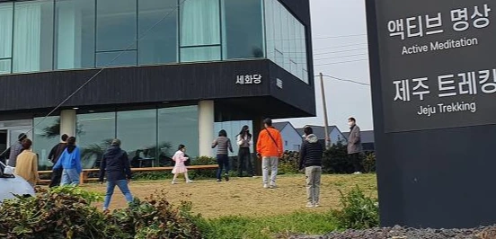 아침 일찍 어제와 같이 숨비소리길을 걷는다. 세화까지 35분 왕복 1시간이 넘는다. 어제와 같은 길이지만 오늘 하늘은 더 맑고 밝다. 바다는 더 푸르고 푸름을 뽐내고 있다. 리조트 앞, 사람들이 모여서 음악에 맞추어 라인댄스를 하고 있다. 리조트 이름 아래 '액티브 명상, 제주 트레킹'이라는 푯말이 보인다. 액티브 명상을 하는 중이리라. 웃음소리가 들린다. 다시 걷는다. 애견 동반 카페 앞 강아지 두 마리가 뛰어놀고 있다. 숨비소리길은 바쁘다.