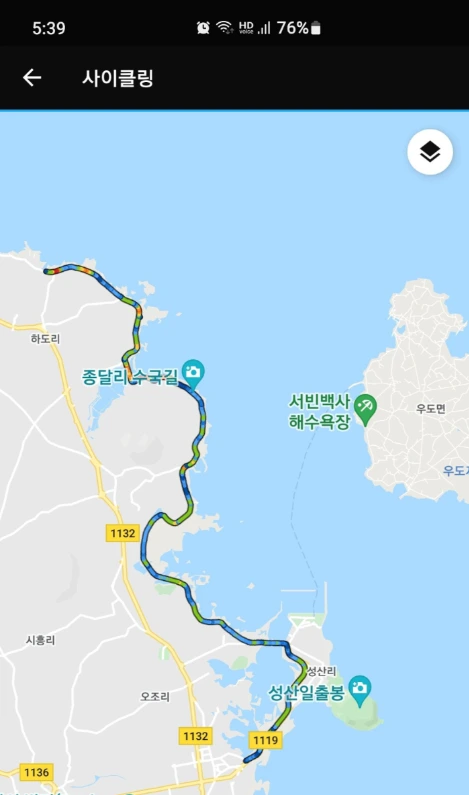 오후에는 자전거를 타고 성산일출봉까지 다녀왔다. '환상 자전거 길!', 이름처럼 아름다운 길이다. 오래전 남편과 강원도 양양에서 고성까지 3일 동안 자전거로 길을 달렸다. 하루 5시간 이상 달리느라 힘들었지만 그 3일 이후 언제든 구석구석 익숙한 나의 길이 되었다. 오늘은 왕복 2시간 반, 28.32km를 달렸을 뿐인데 돌아오니 온 몸이 아프다. 시간이 지났음을 나이를 실감한다.