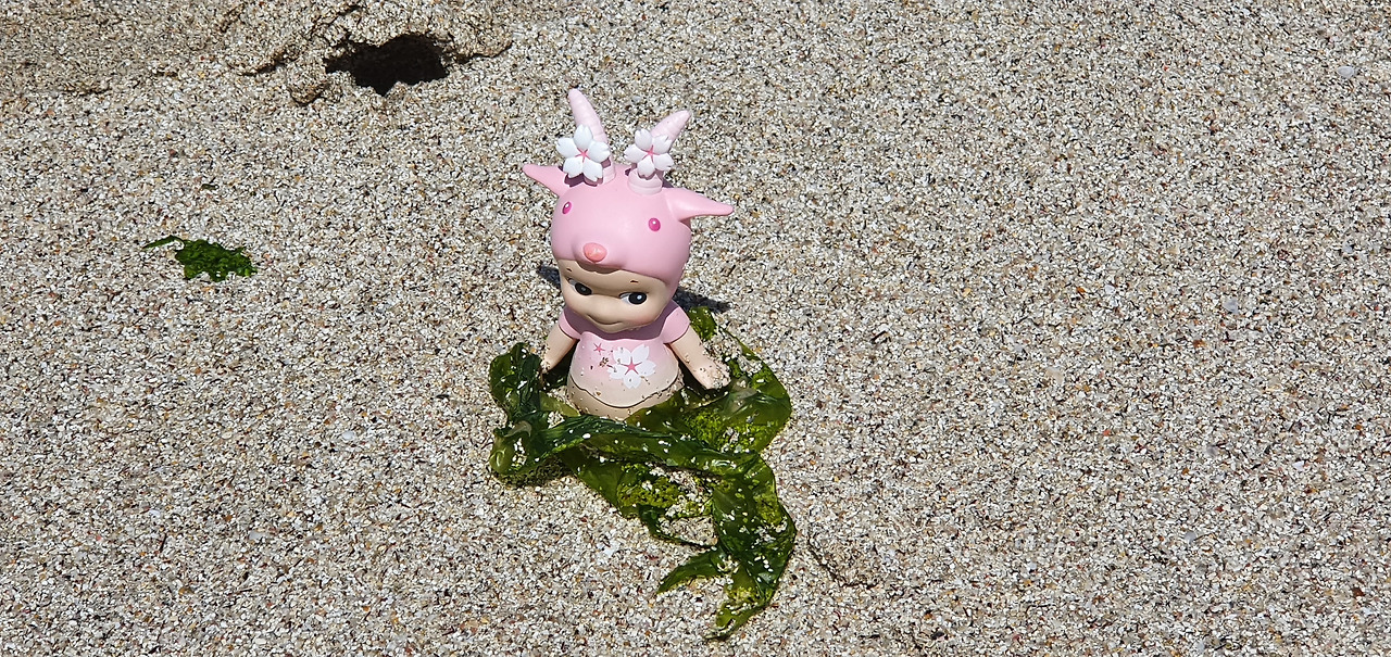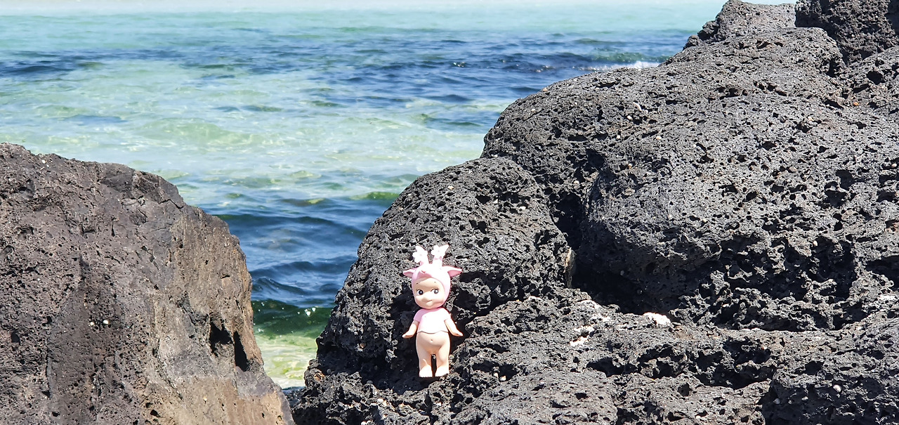 세화리의 전복 전문음식점에서 아침을 먹고 바닷가의 카페에서 당근주스를 마시고 바다로 나왔다. 옥색 바다가 빛난다. 친구가 소니엔젤 인형을 모래사장에 놓고 사진을 찍기 시작했다. 분홍 벚꽃을 머리에 매단 작은 인형은 투덜거리지 않고 모델일을 열심히 해 준다. 기특한 모델에게 미역을 감고 모래에 묻고 사진을 찍으며 우리는 웃었다.