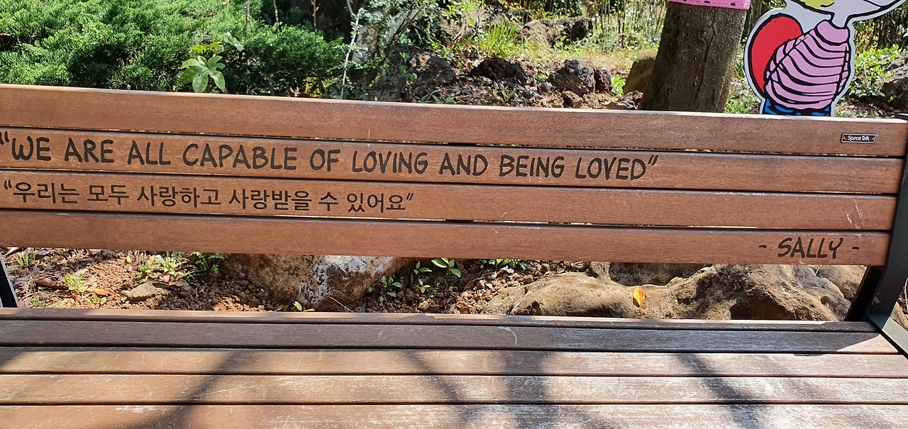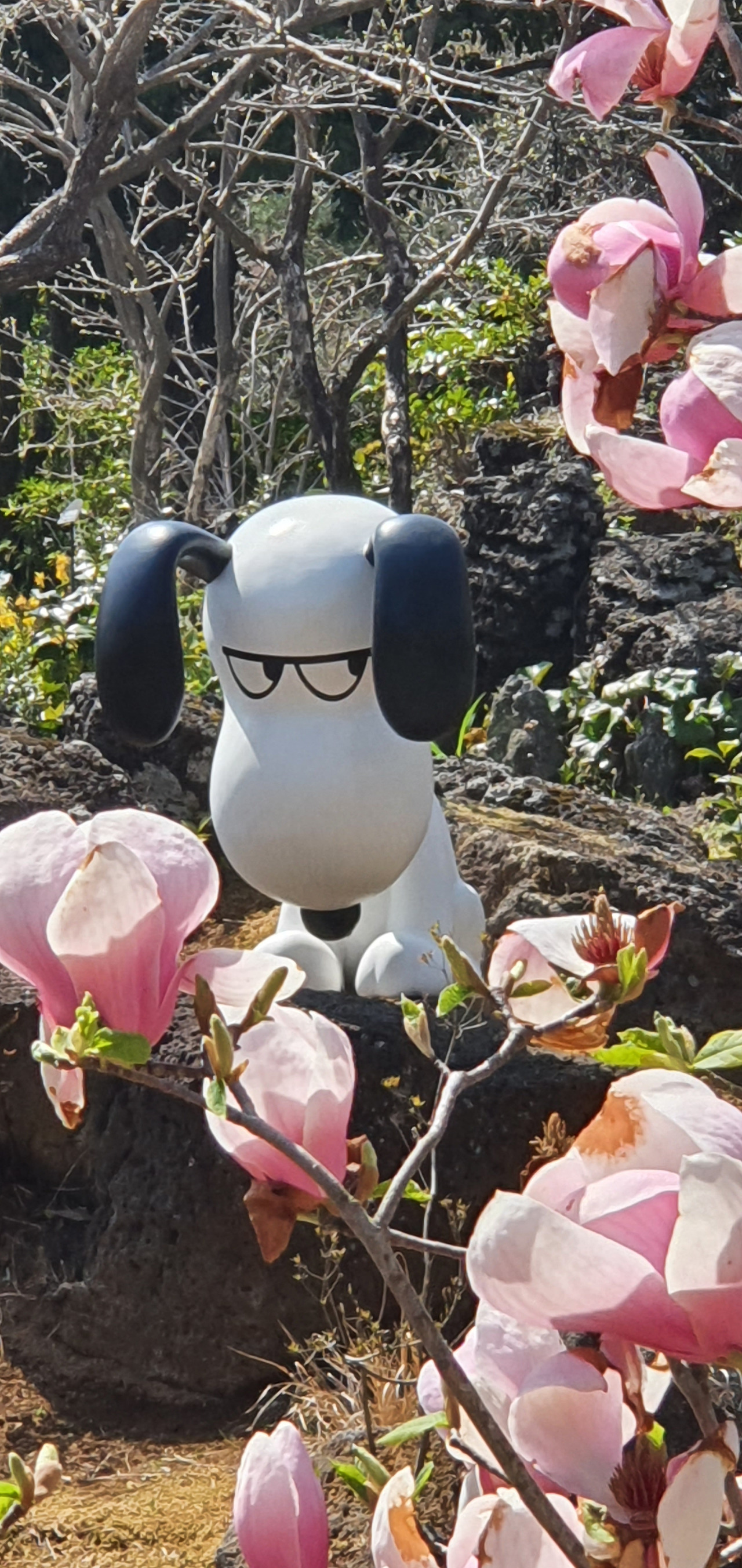 세화리를 떠나 마지막 벚꽃이 날리는 1112 도로를 지나 '스누피 가든'으로 향했다. 친구들은 내게 한달살이를 하면서 내가 절대 선택하지 않을 스누피 가든을 가보자고 했다. 천지가 꽃인데 오름이나 길을 걷자는 내게 오늘은 그저 재미있게 웃고 즐기면 된다고 한다. 스누피 가든은 어린이의 놀이터인지 어른의 놀이터인지, 각종 피규어 앞에서 사진을 찍는 어린아이와 어른들로 북적인다. 항상 얄밉지만 설득당하는 루시의 5센트 상담소 앞에서 그들의 명대사를 오랜만에떠올려본다. 야외정원으로 나와 천천히 산책을 했다. 잘 가꾸어 놓은 꽃들이 한창이다. 팸플릿에 구역별 스탬프를 모아가면 선물을 준다고 했지만 우리는 체력이 다해 포기했다.