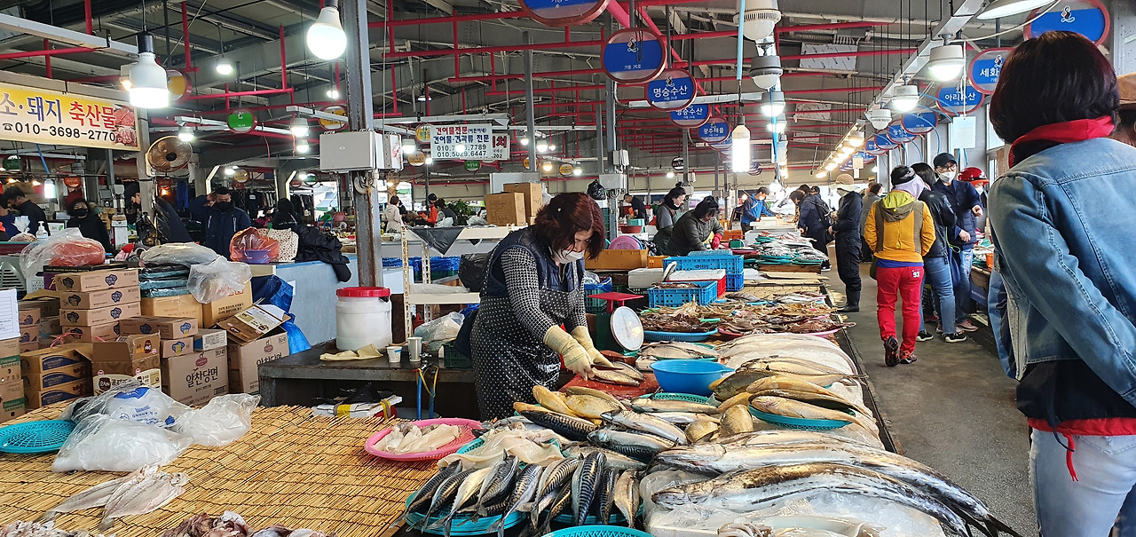 세화 바다는 바쁘다. 오늘은 15일, 5일장이 열린다. 장을 돌아보며 천혜향과 방울토마토, 고구마, 밤을 두 손 가득 들고 혹시나 하는 마음으로 지난번 강아지들을 찾았지만 다행인지 불행인지 찾을 수 없었다. 모자와 옷, 과일과 야채, 없는 것이 없다. 그중 가장 활기 있는 생선가게 앞에서 문어를 살까 하고 망설였다.