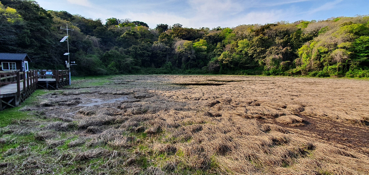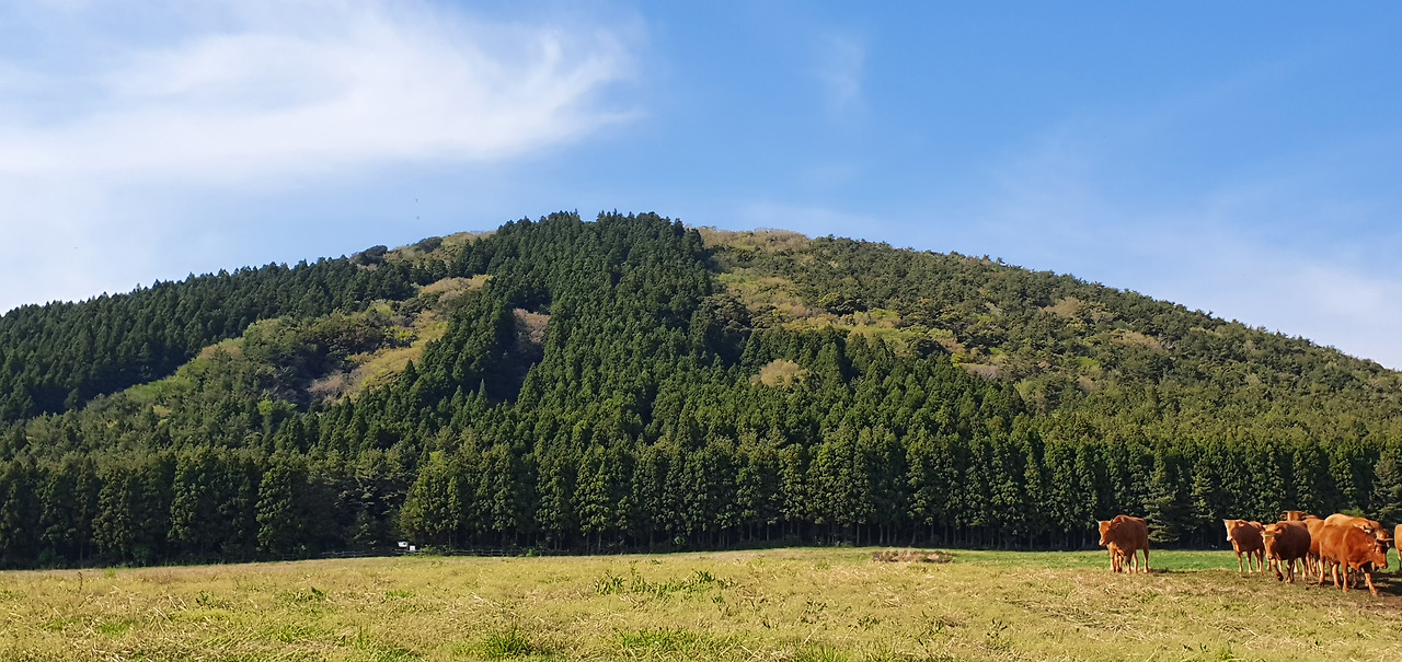 물영아리 오름 입구의 넓은 들판에 소떼가 집으로 돌아가는 듯 일렬로 걷는다. 바람이 분다. 숲의 입구에서 오후의 햇살을 살피며 가장 빠른 계단길을 선택했다. 빽빽한 삼나무 사이로 끝없는 계단을 오르고 오른다. 오전에 영주산을 오르고 자전거를 타고 다시 계단을 오르려니 다리가 풀렸다. 고개를 들어도 삼나무가 나를 내려다본다. 이곳에도 신선이 사는가 보다. 세 번의 쉼터를 지나고 하늘이 열렸다. 길을 돌아 습지가 보인다. 잃어버린 소를 찾는 젊은이에게 마르지 않을 큰 샘을 선사한 백발노인의 이야기가 전해는 연못을 확인하고 계단길이 아닌 둘레길로 내려왔다.