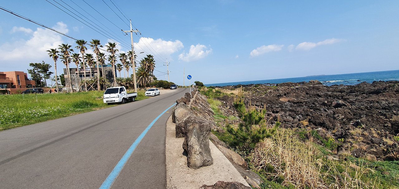 신비로운 영주산을 떠나 샌드위치로 점심을 먹고 쇠소깍 근처에 차를 주차했다. 작년 9월 쇠소깍에서 제주 칼호텔까지 자전거로 달렸던 길을 다시 달려보고 싶었다. 환상 자전거길을 달린다. 보목포구를 지나고 14km의 짧은 길이었지만 바다를 마주하고 달리는 길에는 걷는 사람들도 활기차다.