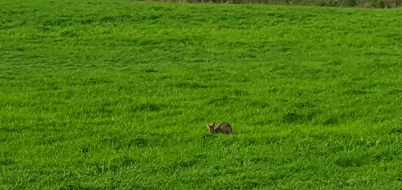 둘레길도 쉽지 않았다. 산뽕나무, 서어나무, 덜꿩나무, 사스레피나무, 때죽나무, 나무 이름표을 확인하며 걷는다. 저녁 햇살을 머금은 초록의 숲길을 돌고 돌아 내려온 들판에 고라니가 세 마리 풀을 뜯고 있다. 그중 한 마리가 우리와 눈이 마주친 듯, 몸을 낮춘다. 어제 백약이오름에서 찾은 고라니가 여기에 있다.