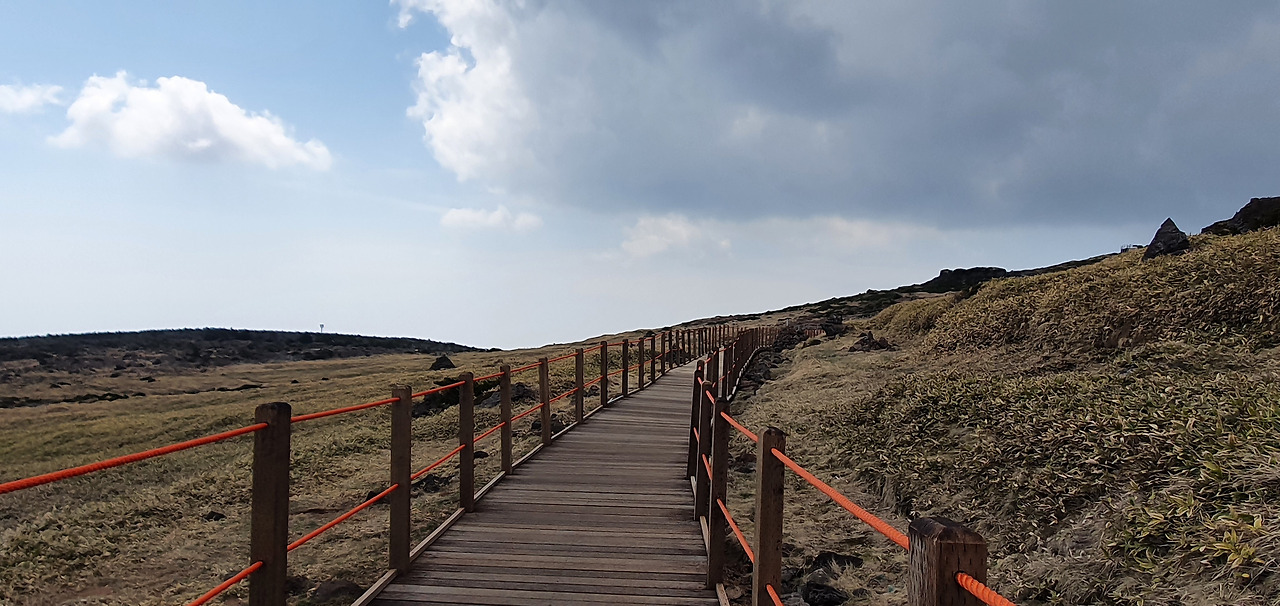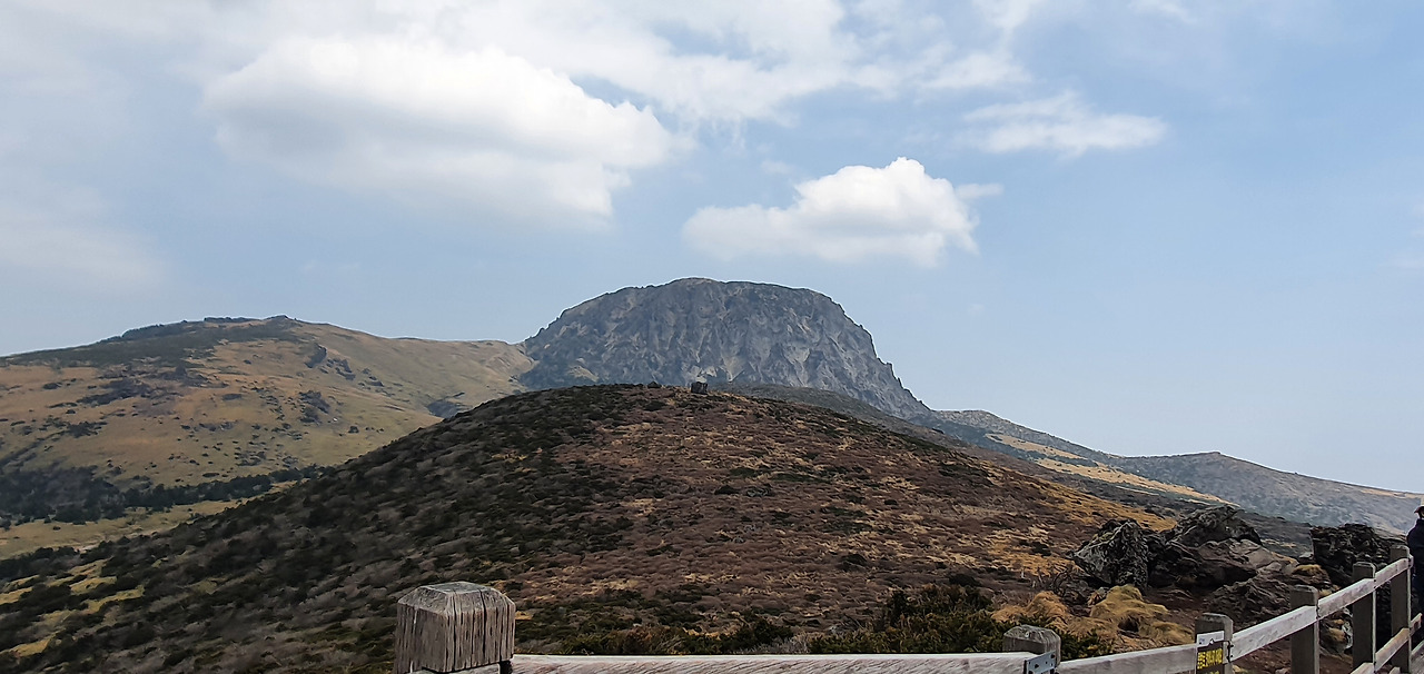 고사목과 구상나무를 지나 족은 윗세오름 전망대를 보고 잠시 망설였다. 내려오는 길에 갈까 하다 오름 책에서 본 족은 윗세오름에서의 전망을 확인하고 싶어 전망대로 향했다. 거칠 것 없는 들판에 한라산 화구벽과 윗세오름이 펼쳐진다