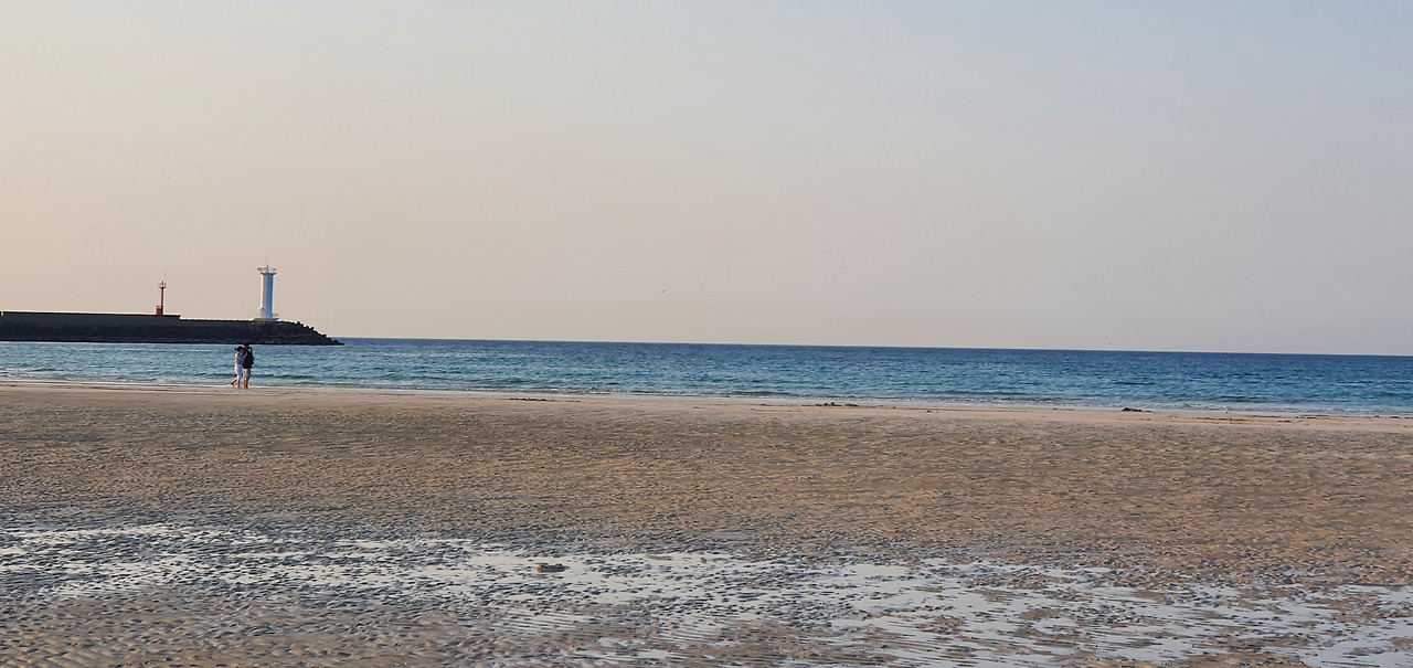돌아오는 길, 세화 바다가 열렸다. 썰물 때인가! 먼바다로 걸었다.