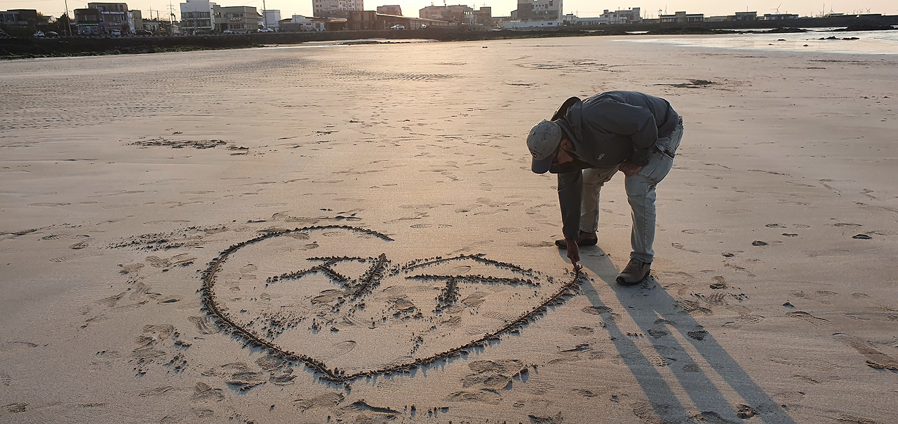 남편이 딸의 이름을 바다에 남긴다. 막내 강아지 은동이의 이름도 저녁 햇살에 반짝인다.