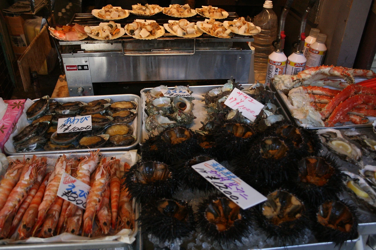 츠키지 시장은 깨어있다. 장외시장 골목의 작은 가게로 들어간다. TV에서 보았던 100엔 계란말이 가게에 사람들이 줄을 서있다. 사시미, 초밥, 조개구이, 골목 안으로 들어가니 야채가게도 보인다. 딸과 계란말이를 시작으로 조개구이와 참치 초밥을 먹었다. 평소에 아침을 먹지 않지만 여행지에서는 예외다.