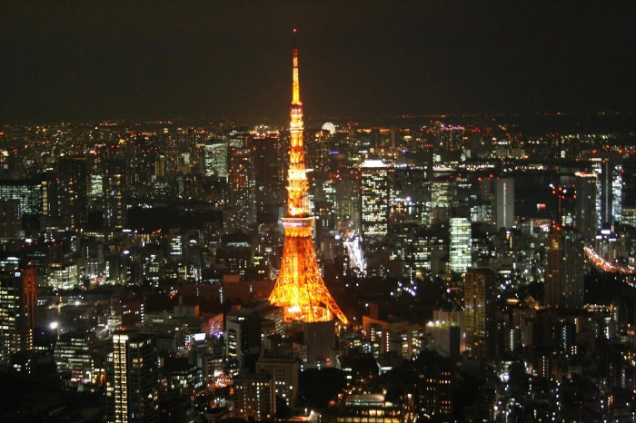 (모리 타워 전망대에서 내려다보는 도쿄 타워와 도쿄 도심)