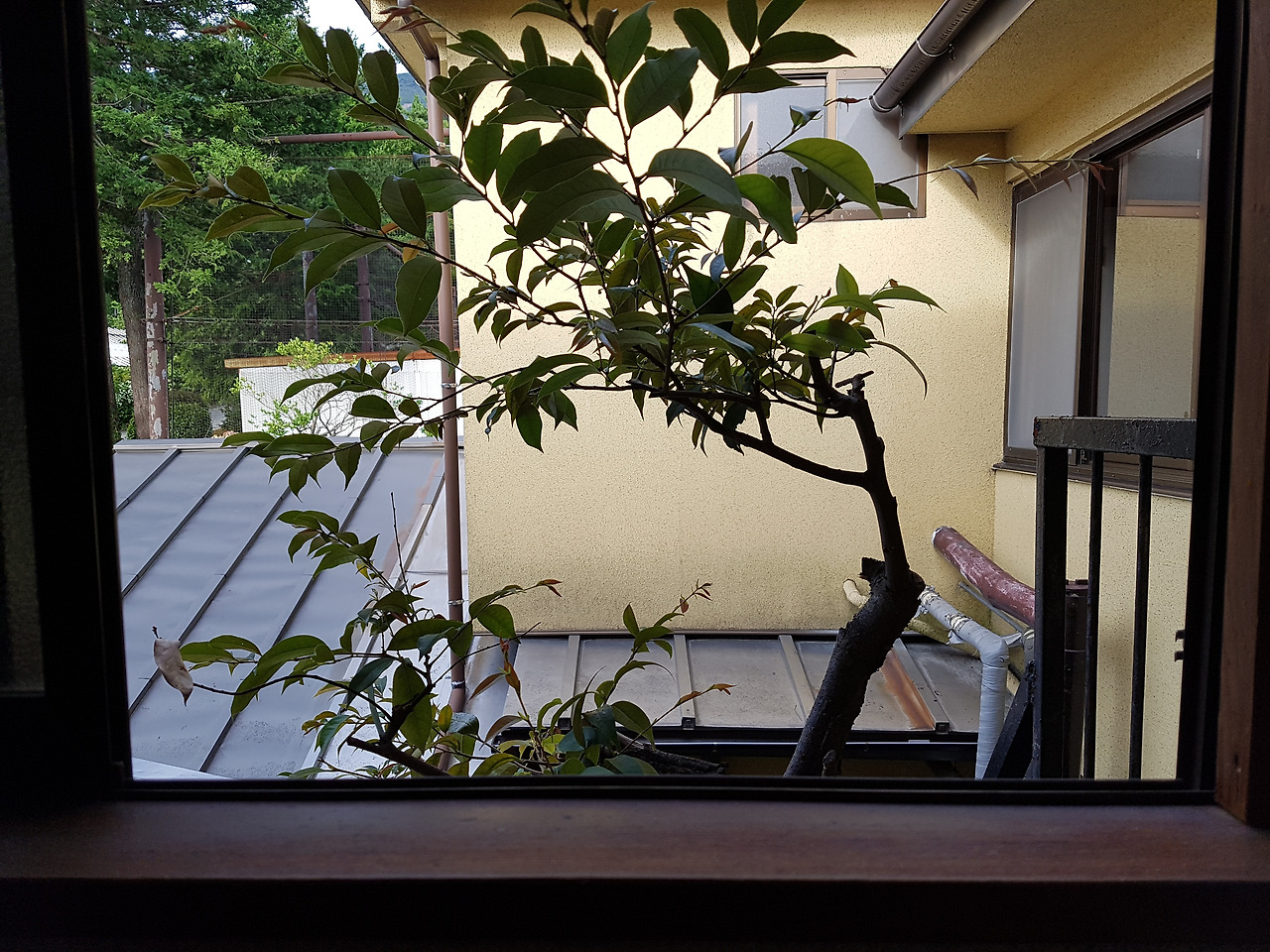 기차가 고라(Gora) 역에 도착하자 사람들이 모두 내린다. 대부분의 사람들은 다시 다른 등산열차를 타고 소운잔 역으로 가서 케이블카를 타고 오와쿠다니 화산을 둘러본다. 마을 주민인 듯 보이는 아주머니들과 딸과 나는 고라 역에서 나왔다. 작은 역이다. 구글 지도를 켜고 오늘 밤을 지낼 온센호텔'Onsen Hotel Gorakan'을 찾았다. 깔끔한 입구에 들어가니 아주머니가 나온다. 아주머니는 영어를 하지 못하고 나의 부족한 일본어와 수화로 겨우 이야기를 나누었다. 저녁은 6시 가이세키 정식, 가족 노천탕은 7시로 예약하고 안내해주시는 방으로 들어간다. 깔끔한 다다미 방이다. 나무와 꽃이 내려다보이는 2층 방이다.