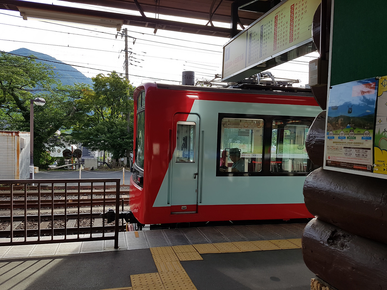 기차에서 에키벤으로 돈가스 샌드위치를 먹고 1시간 34분 시골길을 달려 하코네 유모토에 도착한다. 로만스키 기차에서 여행자들이 내린다. 유모토역 3번 홈에서 하코네의 등산열차로 갈아탄다. 내가 사진에서 본 빨강 기차가 기다리고 있다.