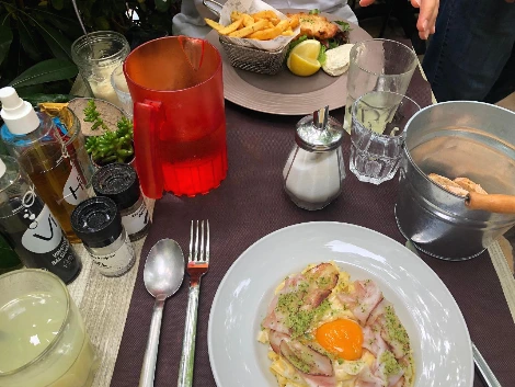 딸은 'Pasta Carbonara' 나는 'Fish and Chips'를 주문했다.