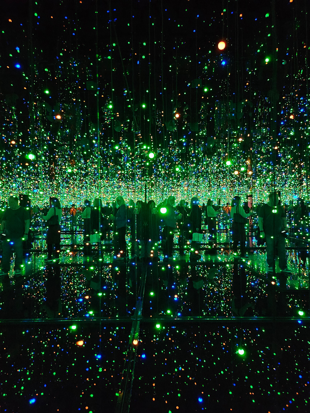 테이트 모던 6층에는 멤버스 라운지가 있다. 라운지 위층 7층 식당에서 점심을 먹는다. 창으로 10층 보다 낮지만 여전히 높은 위치에서 템즈강과 세인트 폴 성당을 바라본다. 점심을 먹고 다시 커피를 마시고 1층 터빈홀로 내려와 어린아이들이 미술관으로 제멋대로 들어오는 모습을 보다 기획전시가 열리는 블라바트니크 빌딩(Blavatnik Building)으로 이동한다. 2시, 쿠사마 야요이의 Infinity Mirror Rooms 전시를 예약했다. 쿠사마 야요이 전시는 제주도 본태미술관 전시보다 규모가 작다. 그래도 쿠사마의 반짝이는 거울을 보려는 사람들이 줄을 서 기다린다.