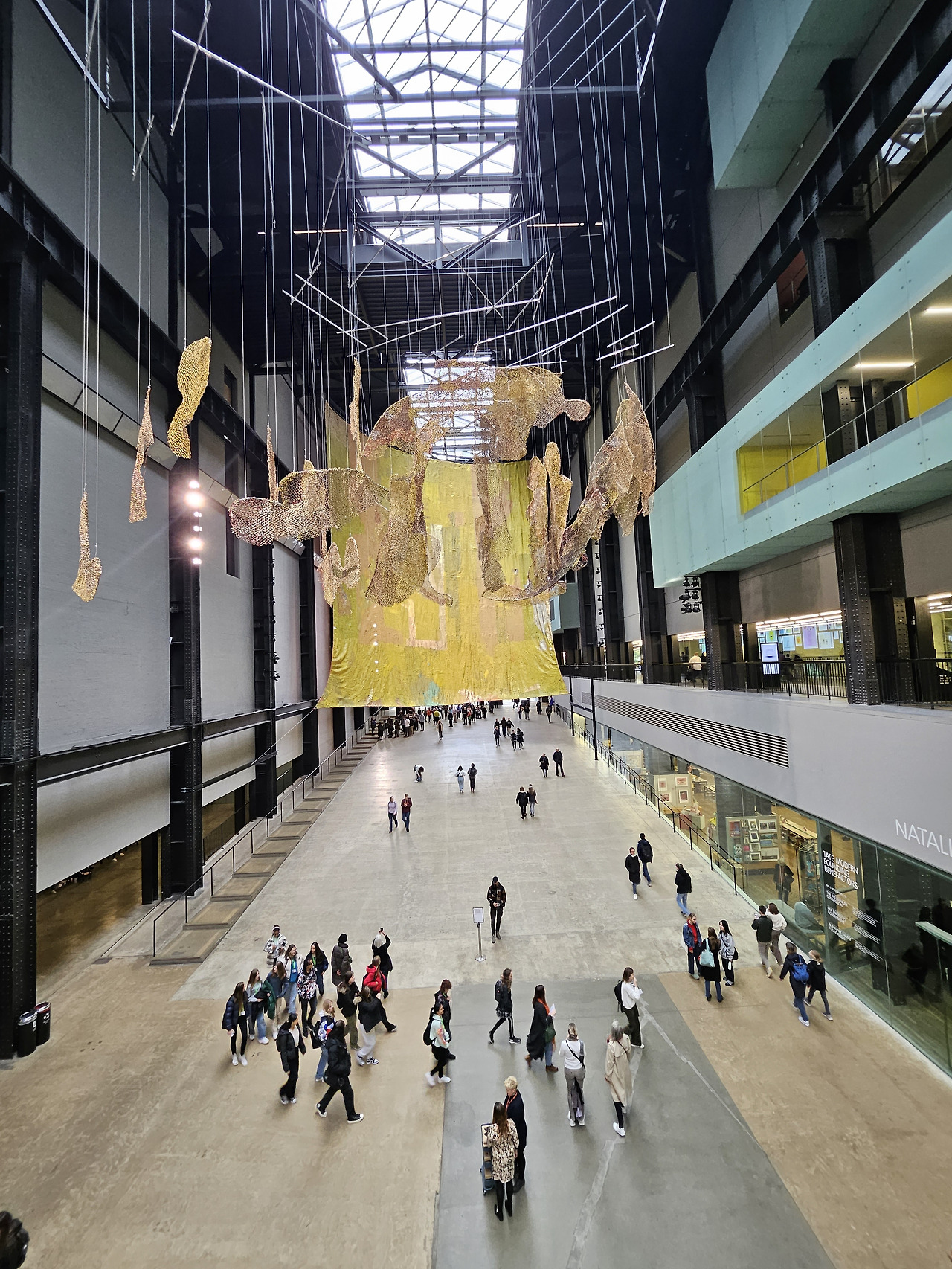 테이트 모던으로 들어가자 아트샵을 지나 테이트 모던의 상징인 터빈 홀(Turbine Hall)이 옆구리로 보인다. 나는 멋지게 0층 터빈 홀의 입구로 들어가고 싶었는데 템즈강변의 입구는 1층이다. 그래도 터빈 홀의 전시를 보며 아이들이 전시관으로 뛰어 들어오는 모습을 보고 있다. 방치되어 있던 뱅크사이드 화력발전소를 미술관으로 리모델링한 테이트 모던의 거대한 입구와 그 입구로 자유롭게 들어오는 사람들을 한참 동안 바라본다.