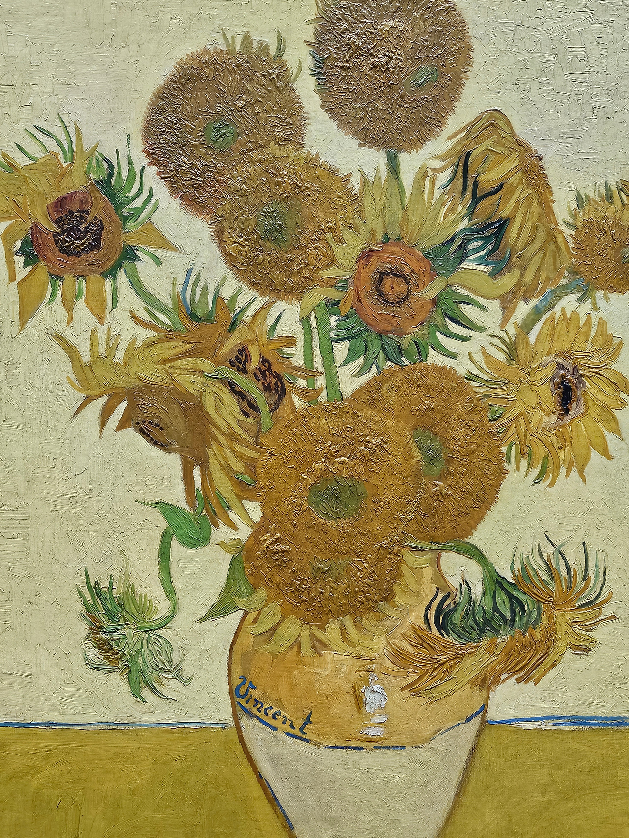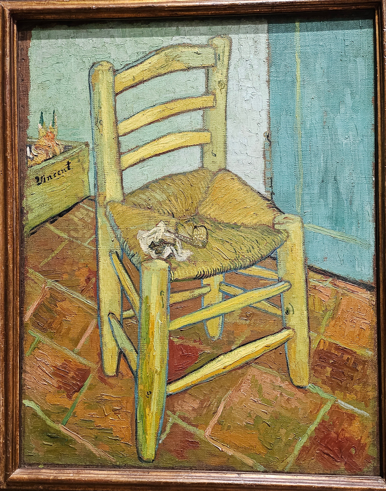 살아서 단 한 점의 그림을 팔았을 뿐 인정받지 못하고 외롭게 살았던 반 고흐의 '해바라기'와 '빈센트의 의자' 앞에 사람들이 가득하다. 고흐의 그림 맞은편에 쇠라의 멋진 그림 '아스니에르에서의 물놀이'가 있지만 사람들은 반 고흐의 그림을 조금이라도 가까이에서 보고 사진을 남기느라 분주하다. 조금 멀리서 고흐의 해바라기를 보고 있다. 태양을 사랑했던 고흐는 아를의 노란 집에서 고갱과 함께 그림을 그릴 수 있다는 희망으로 해바라기를 그린다. 해바라기 연작 중에서 가장 유명하고 아름다운 그림. 두꺼운 물감으로 희망과 행복을 담았을 고흐를 상상해 본다. 그러나 오래지 않아 희망이 절망으로 바뀌고 고갱이 떠난 후에 그린 고흐의 그림 '빈센트의 의자'는 그의 고독을 나타낸다. 빈 의자 위에 그를 상징하는 파이프가 있다.