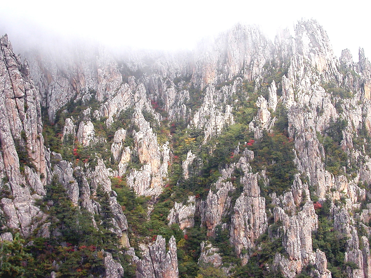 아침 식사 후에 만물상으로 떠나는 셔틀 버스에 올랐다. 만물상을 보지 않고는 금강산을 논할 수 없다는 말을 들었기에 기대가 컸다. 날씨는 또 얼마나 좋았는지 가끔 구름이 한 자락씩 오가는 빛나는 가을날이었다.