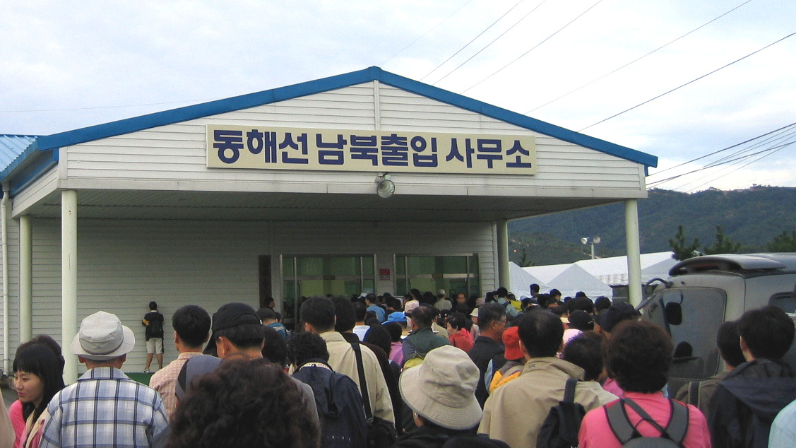 버스는 금세 남방한계선을 지났고, 군사분계선을 알리는 녹슨 철 표지판을 지나 드디어 북측 비무장지대에 들어섰다. 북방한계선을 통과하자 진한 밤색 군복을 입은 북측 군인들이 나타났다. 버스는 잠시 정차했고 인민군 장교 두 명이 올라와서 인원 점검을 했다. 사뭇 떨리는 순간이었다.