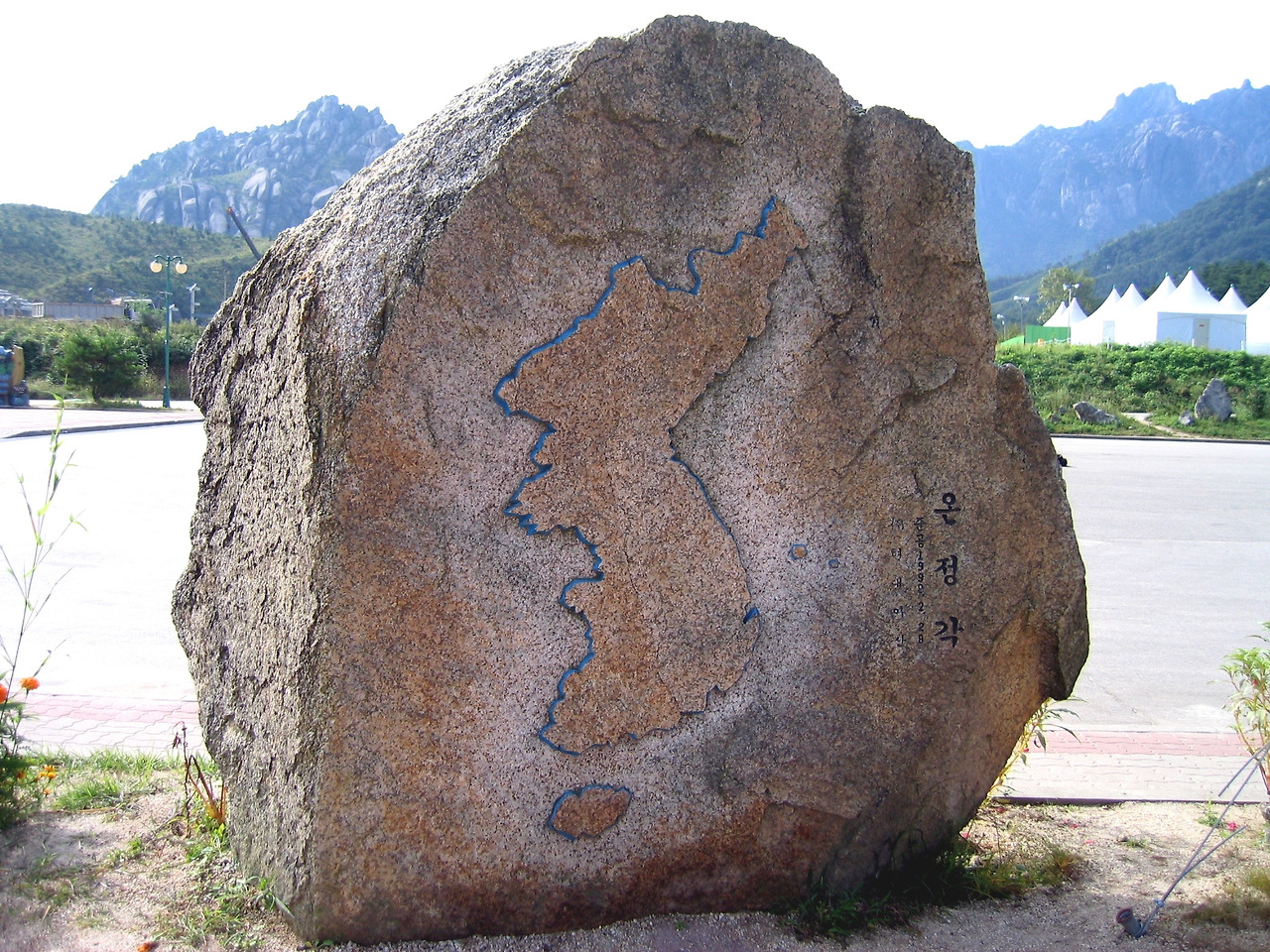 출발한 지 약 한 시간 만에 우리는 고성항(장전항)에 있는 북측 출입국 사무소에 도착했다. ‘반갑습니다’라는 노래가 울려 퍼지는 가운데 하늘은 어느새 맑게 개어 있었고 내 마음도 한결 푸근해졌다. 사무소 가까이 호텔 해금강과 펜션 타운이 보였다. 수속을 밟고 온정각으로 향했다.