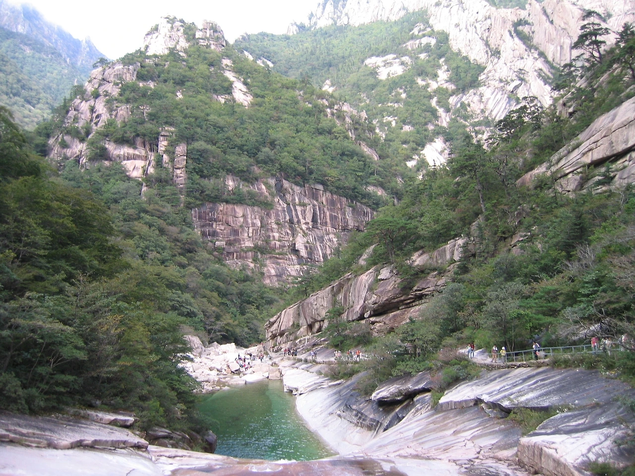 계곡을 지나 구룡대 정상에 오르자 마음이 더할 나위 없이 시원해졌다. 산을 내려가기가 싫었다. 주위로는 겹겹의 바위산들이 둘러쌌고 저 아래로는 팔선녀가 목욕했다는 ‘상팔담’이 보인다. 차례로 이어지는 여덟 개 담소의 신비로움은 과연 선녀가 목욕한 곳이라는 느낌이 들기에 충분했다. 구슬처럼 맑고 깨끗해서 천상의 아름다움을 함뿍 맛보게 하는 곳이었다. 네 번째 담소에서 나무꾼이 선녀 옷을 훔쳤다는 전설이 전해온다.