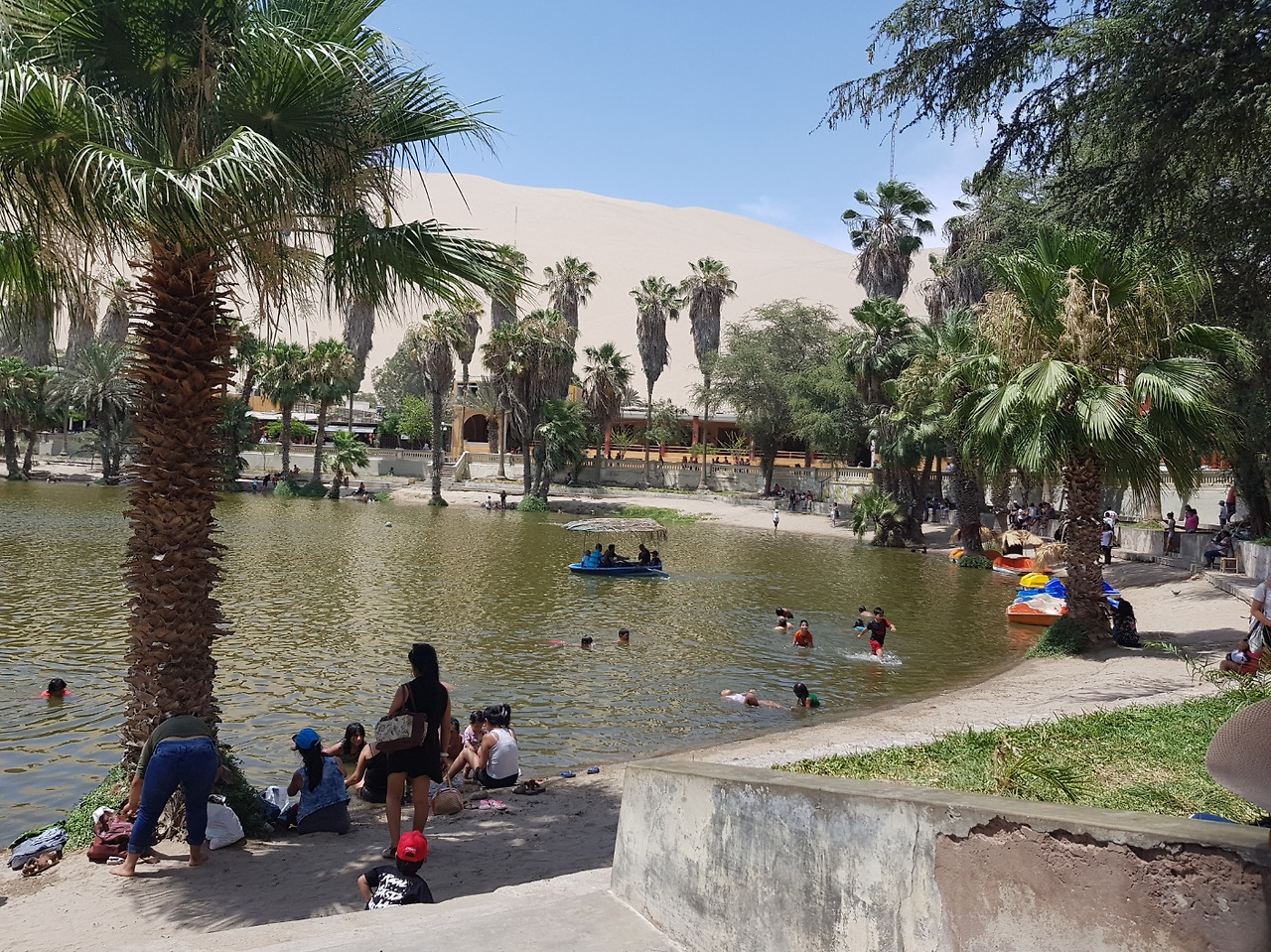 사막에 오아시스라니. 내 평생 오아시스를 만나게 될 줄이야 상상도 못 했다. 사막 한가운데 떡하니 오아시스가 있었다. 내 상상 속의 오아시스는 사막 한가운데 한줄기 물줄기 같은 것으로 굉장히 작았다. 하지만 와카치나 오아시스는 그보다는 훨씬 컸다. 남편은 와카치나는 '우는 여자'라는 뜻인데 두 가지 내려오는 전설이 있다며 이야기해 주었다. 하나는 어떤 공주가 사랑하는 남자와 결혼을 했는데 그 남자가 전쟁에서 죽어서 슬퍼 흘린 눈물이 모였다는 설이다. 또 하나는 어느 여인이 오아시스에서 목욕을 하는데 어떤 남자가 알몸을 훔쳐봐서 수치심에 달아나다 오아시스 인어가 되었다는 설이다. 그 어느 것이든 나에게 사막의 오아시스는 믿을 수 없을 만큼 신비로웠다.