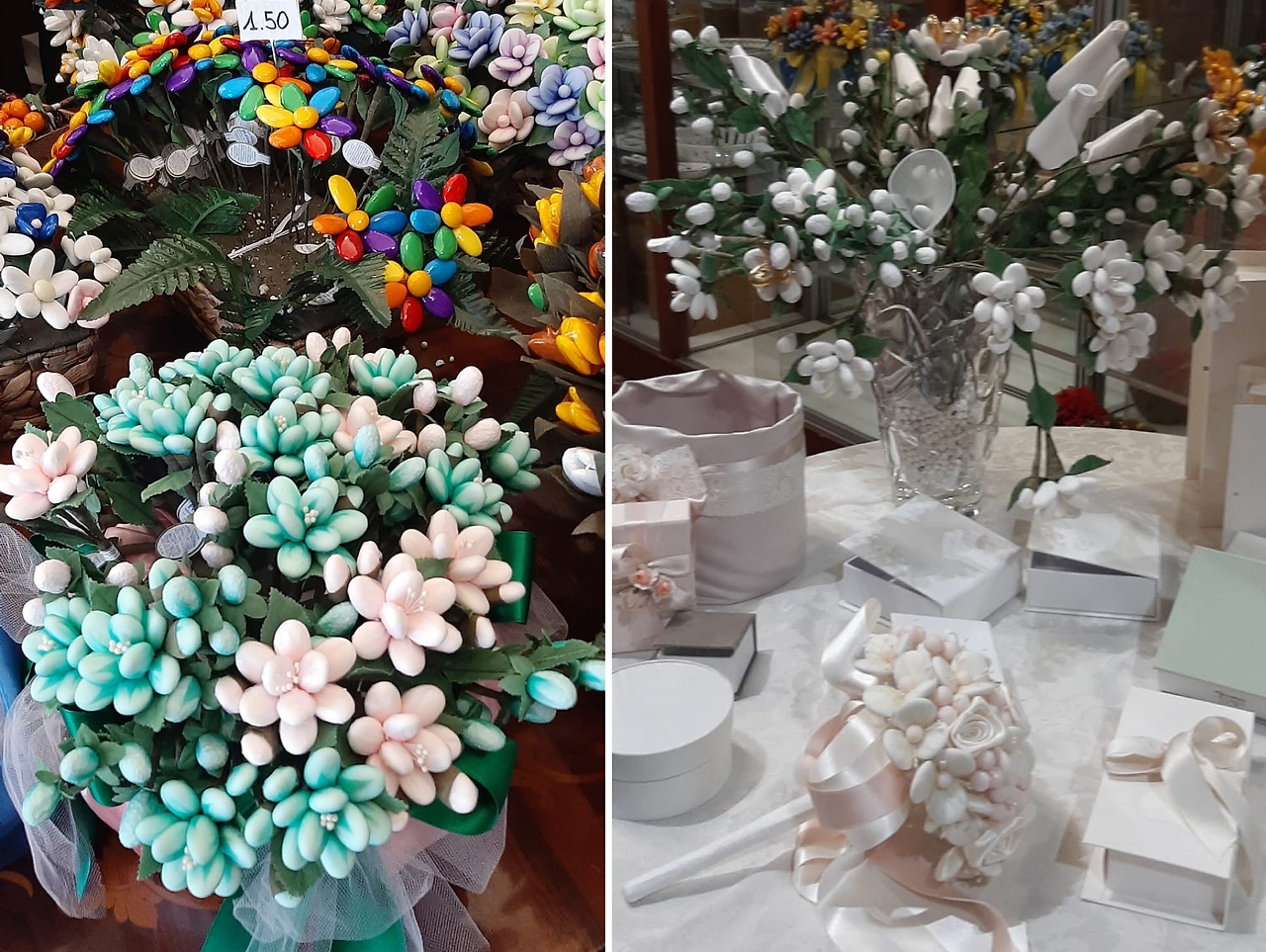 지난 8월에 우리 가족은 로마에서 동쪽으로 1시간여 떨어진 술모나 Sulmona 라는 곳의 전통적인 콘훼티의 제조사를 방문하였다. 우연히 아부르초의 시골 마을을 지나다 남편의 먹거리에 관한 호기심과 궁금증이 발동하여 형형색색의 사탕으로 꾸며진 다양한 모양의 장식품들과 기념품들이 전시되어 있는 전통적인 장소를 답사하게 된 것이다. 1783년부터 가내 수공업으로 시작하였다고 하는데 여전히 아담한 소규모의 공장이었지만 전통의 바탕에서 만드는 콘훼티가 지금도 당당하게 한결같을 수 있게 하는 현장을 볼 수 있었다.