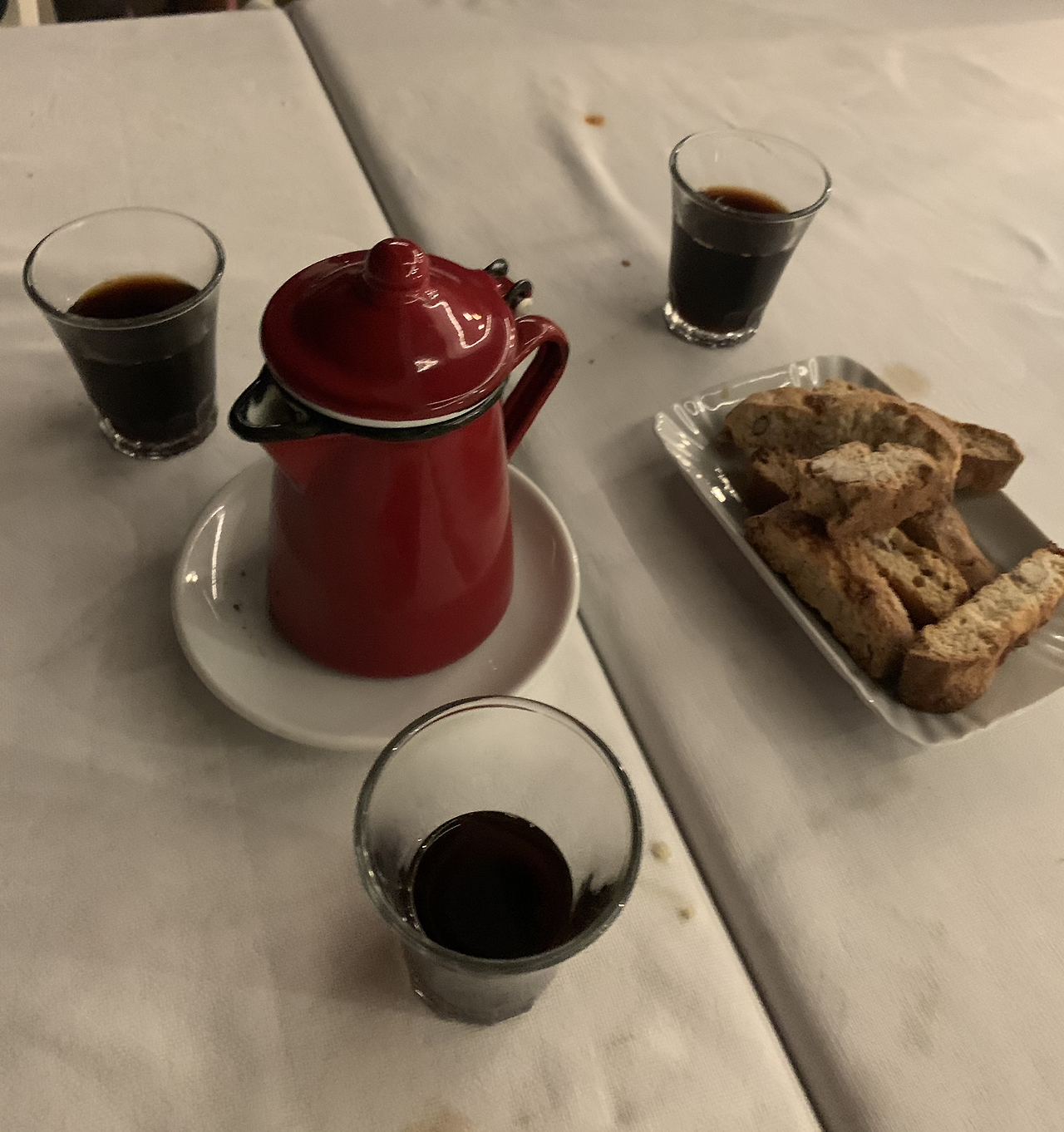 식후에 제공된 특별한 풍미의 카페는 위스키, 그라파 등을 넣어 알코올 향을 풍기는 커피로 바다로 나가는 어부들이 마셨다고 설명해 주었다. 여름에 마시기에는 좀 강한 맛이지만 그래도 일반적인 에스프레소를 마시는 것과는 좀 다른 형태의 카페라 신선했다.