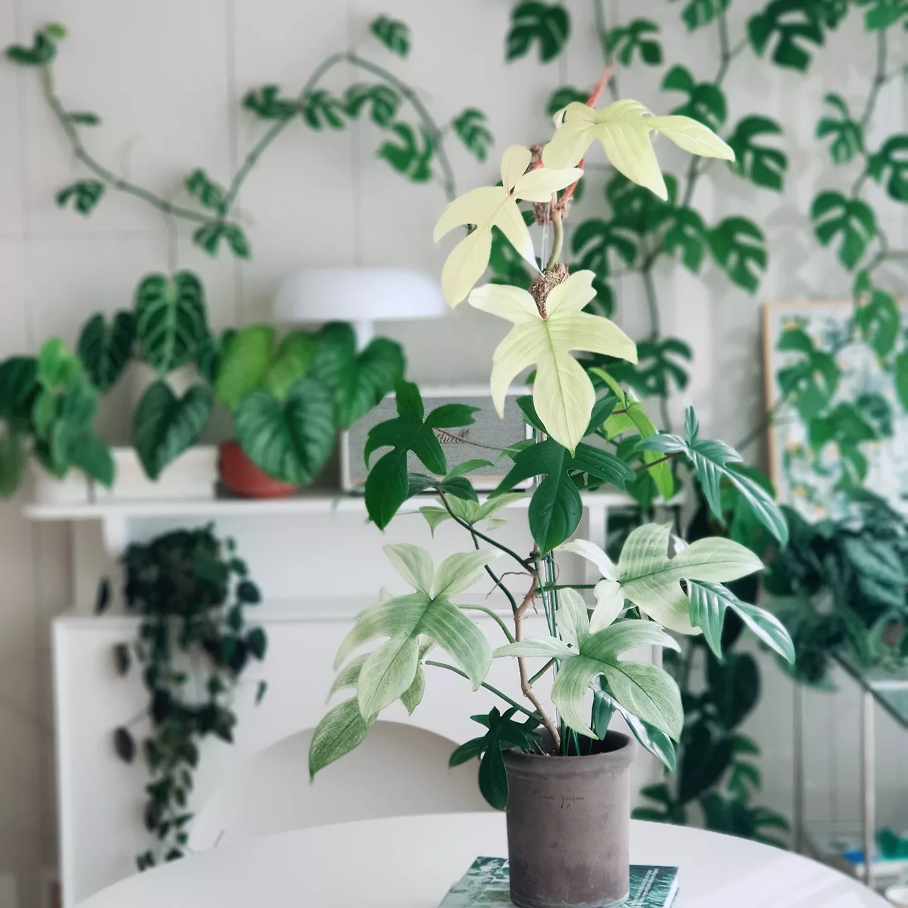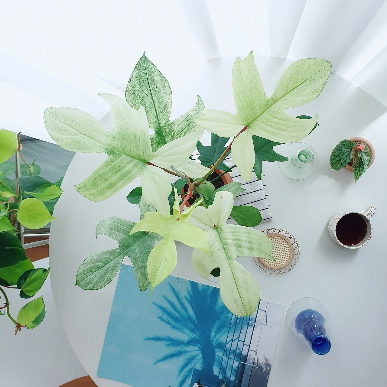 플로리다 고스트를 닮은 식물은 필로덴드론 스퀘미페럼이다. 실은 판매자가 플로리다뷰티라고 해서 구입한 건데 판매자도 스퀘미페럼과 플로리다뷰티를 구분하지 못한 거 같다. 둘은 잎이 많이 닮았는데 플로리다 뷰티가 성체 잎이 될수록 더 날렵해진다. 가장 구분하기 쉬운 특징은 스퀘미페럼은 줄기에 털이 있는데 플로리다뷰티는 줄기에 털이 없다. 나도 이걸로 스퀘미페럼이라는 걸 한참 뒤에 알았다. 플로리다고스트도 줄기가 매끈하다. 둘은 같이 사진을 찍어주면 서로 비슷한 게 느낌이 좋다. 잎이 시원시원해서 여름날의 플로리다 해변이 떠오르기도 한다.