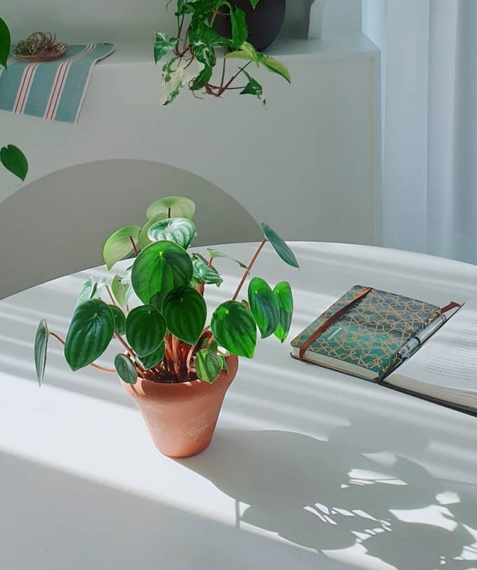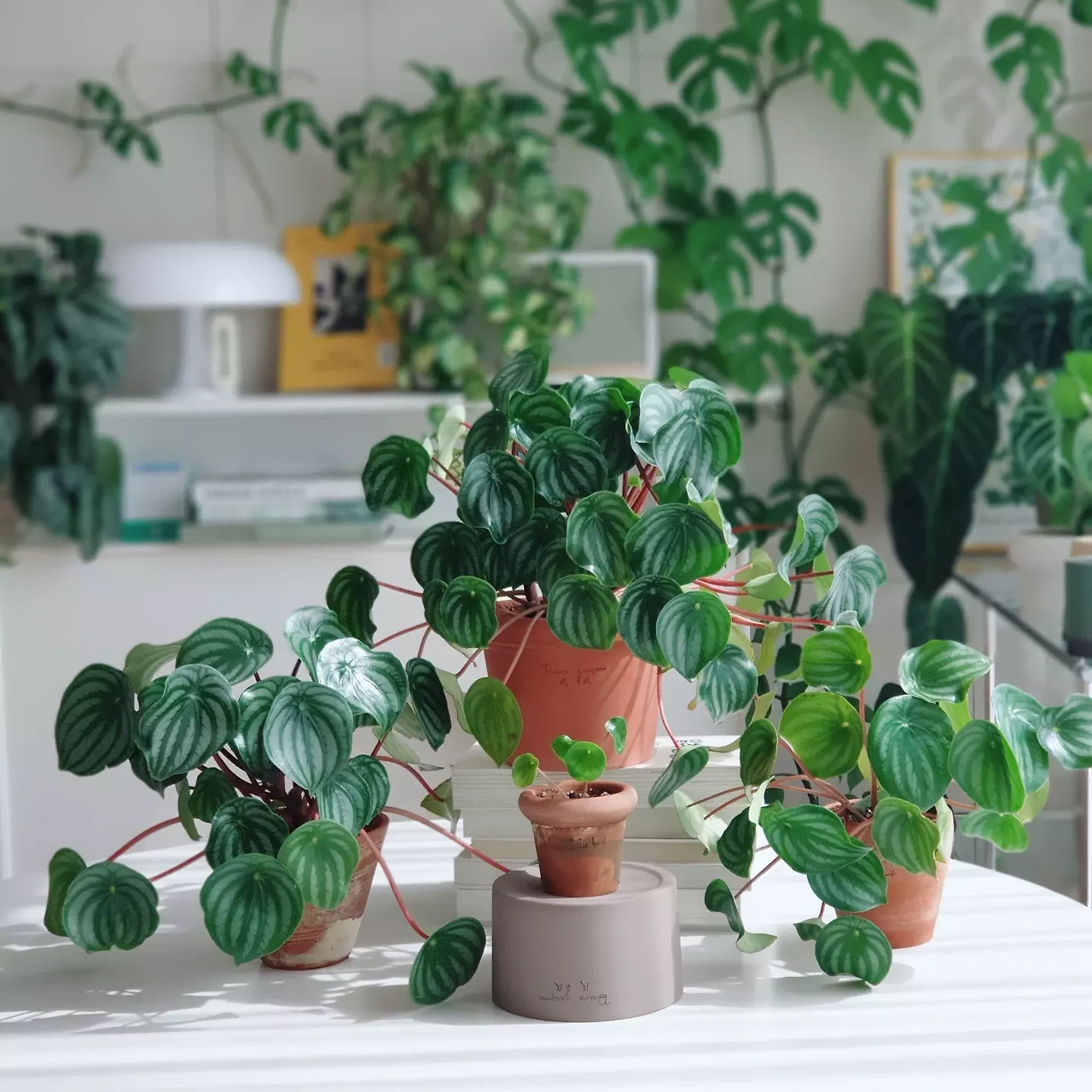 그런 여름의 기억을 닮은 식물이 있다. 동글한 잎 4분의 1 즈음에 수박 꼭지 같은 줄기 달려있는 부분이 있고 꼭지를 시작으로 줄무늬가 있다. 수박의 시원시원한 줄무늬를 꼭 닮은 수박페페는 보기만 해도 여름의 기억이 떠오른다. 수박페페도 햇살을 잘 보고 건강하게 잘 크면 줄무늬가 선명하고 잎에 광택이 난다.
