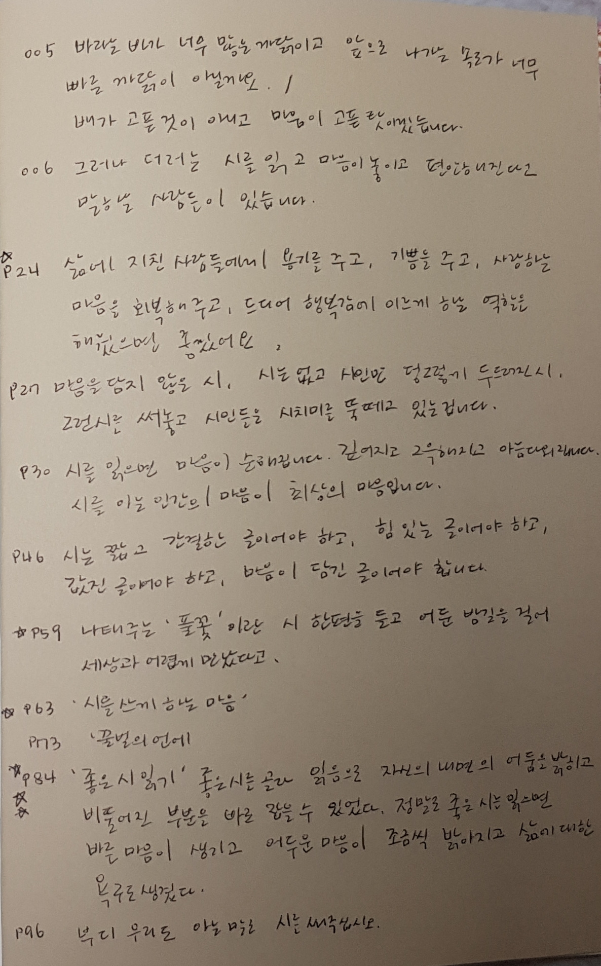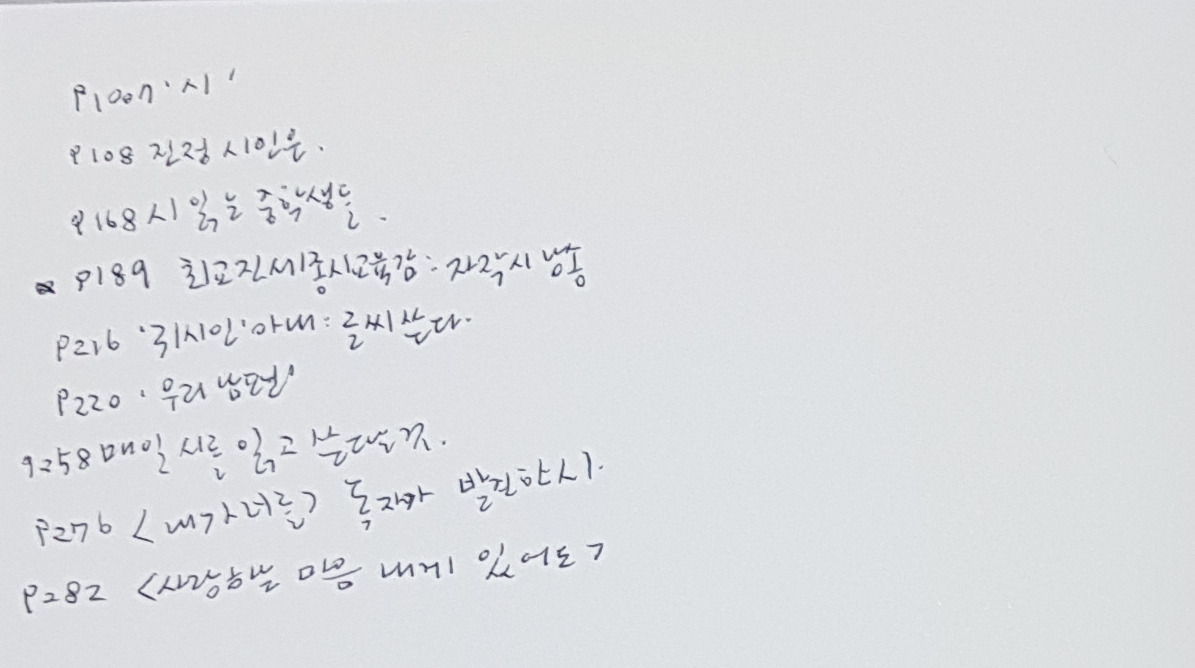 울컥하게 만드는 시들이 많아서 가슴이 묵직해지고 눈시울은 자꾸 뜨거워졌다.