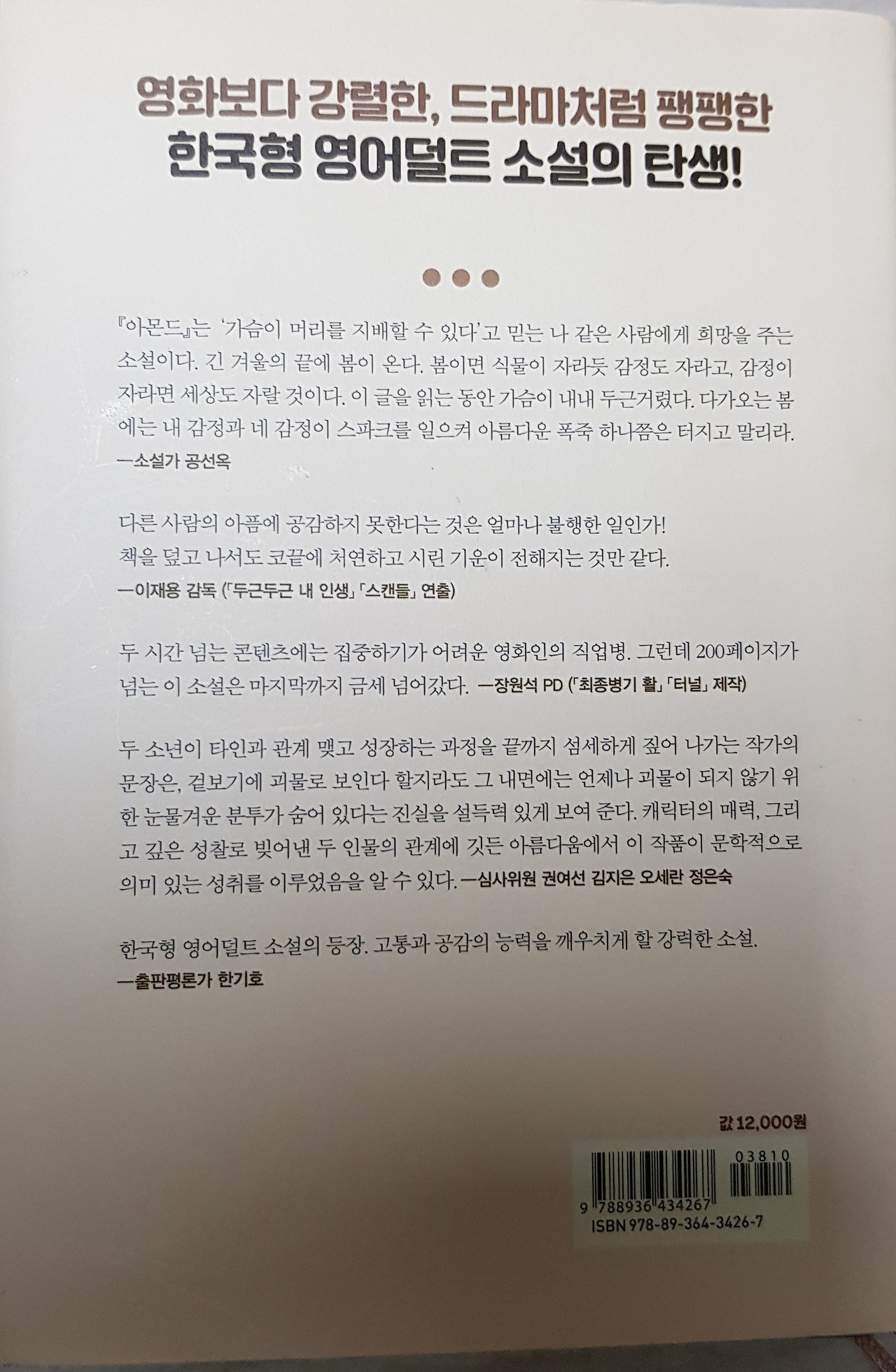 <아몬드>라는 말랑한 제목에 이끌려서 사게 된 책이다. 서점에서 책을 찾아 표지를 봤을 때 제목이 주는 느낌과는 다른 무표정한 소년의 눈빛에 먼저 눈이 갔다.