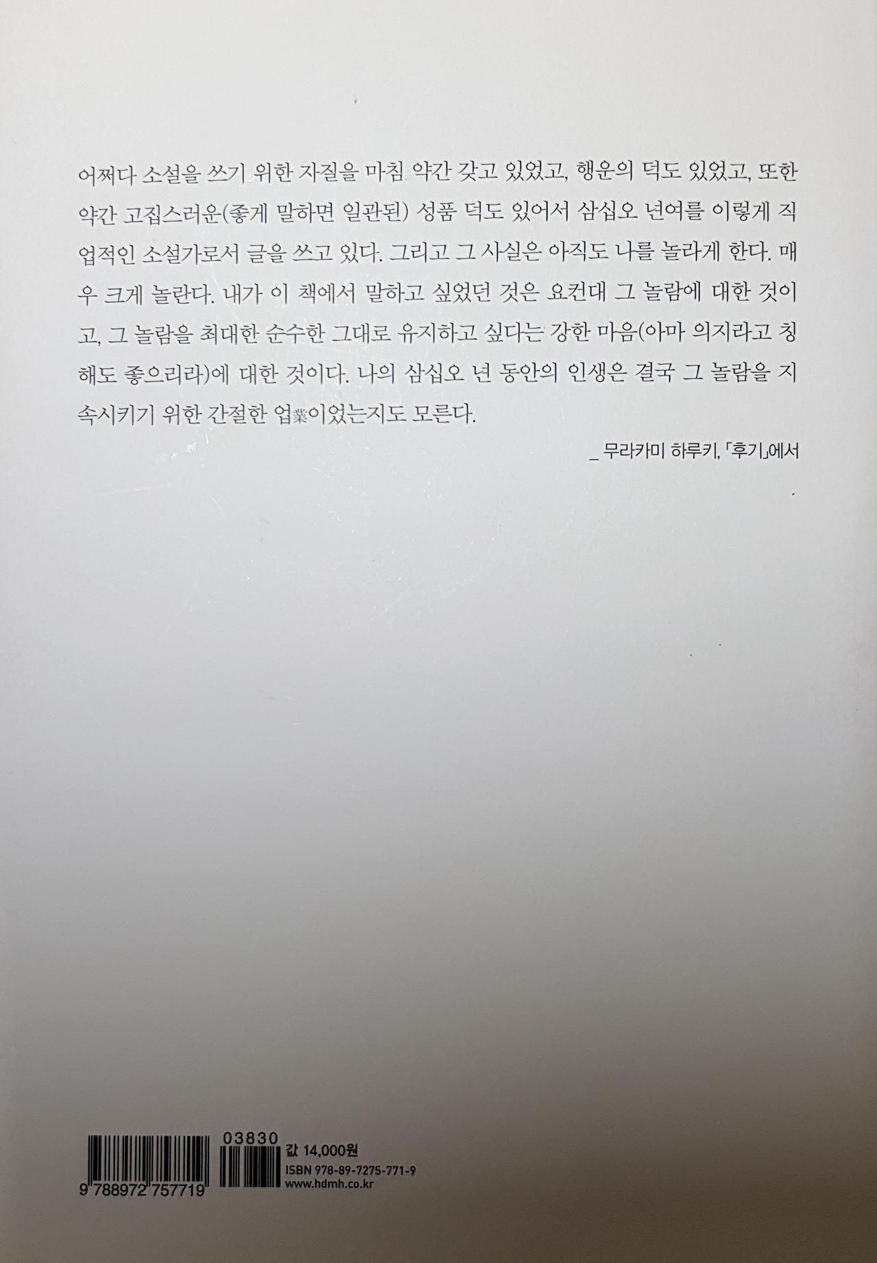 리듬감 있는 그의 글은 한순간에 휘몰아 썼기에 가능했던 것이 아니라 고치고 또 고치며 수없이 전체를 조율하는 과정에서 빚어진 결과물이라는 무라카미 하루키.