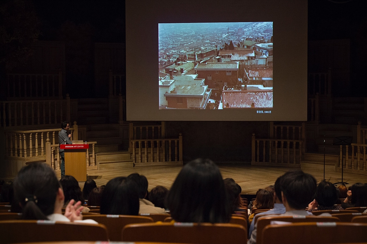 강연을 시작하며, 작가는 한 사진을 보여주었다. 그것은 어렸을 적 살던 종암동, 동네에서 가장 높은 아파트에서 바라본 언덕배기 동네 풍경이었다. 어릴 적 아파트에 살던 경험은 그의 인생 전반에 걸쳐 무의식적으로 동기 부여를 하게 된 것이 아닐까 생각한다고 고백한다.