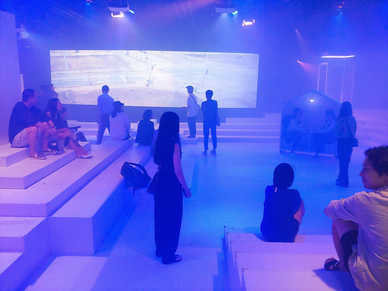 조명, 소리, 벽 곳곳의 영상들은 우리의 오감을 자극한다. 땅바닥에 주저앉고 하늘 위를 쳐다보고 양 옆을 두리번거리며 공간을 구석구석 탐험하게 되고, 심지어 우리는 살고 있는 아파트에서처럼 공간에 동화되는 것을 느낀다.