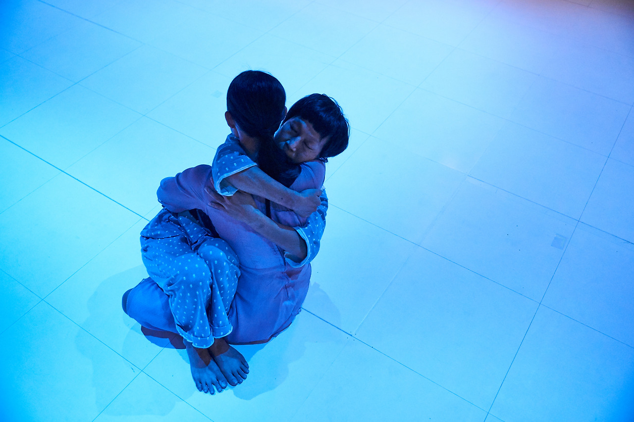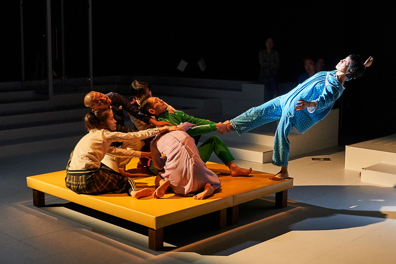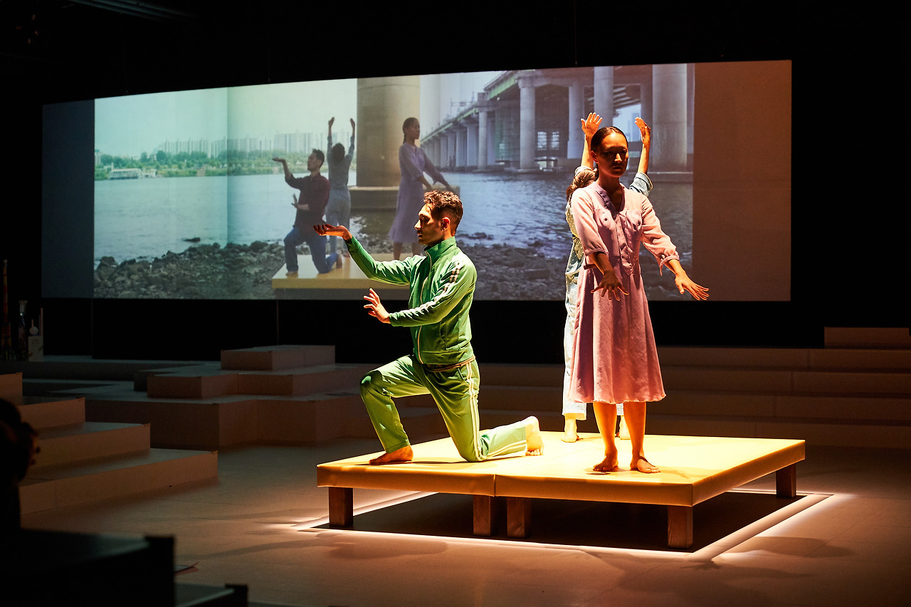 또한 영상은 자연스레 레이어를 덧입히면서 공연을 더욱 입체적으로 느낄 수 있게 한다. 허허벌판에서 폐허처럼 남겨진 아파트와 인물들의 영상을 보면서 마치 상상 속 아파트, 우주를 유영하는 느낌이었다. 바로 연이어 배우들은 춤을 추고 그들은 영상 속에서 금방이라도 빠져나온 것 같았다. 장주지몽. 내가 꿈을 꾸는 것인가 나비가 꿈을 꾸는 것인가. 영상은 그런 느낌이 들게 했다.