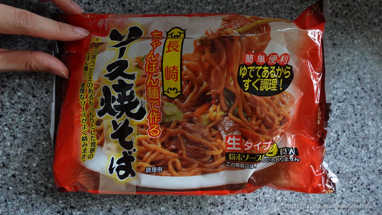나) 근데 좀 질기다. 다음엔 숙주 사서 해물 넣고 해 줄게요.