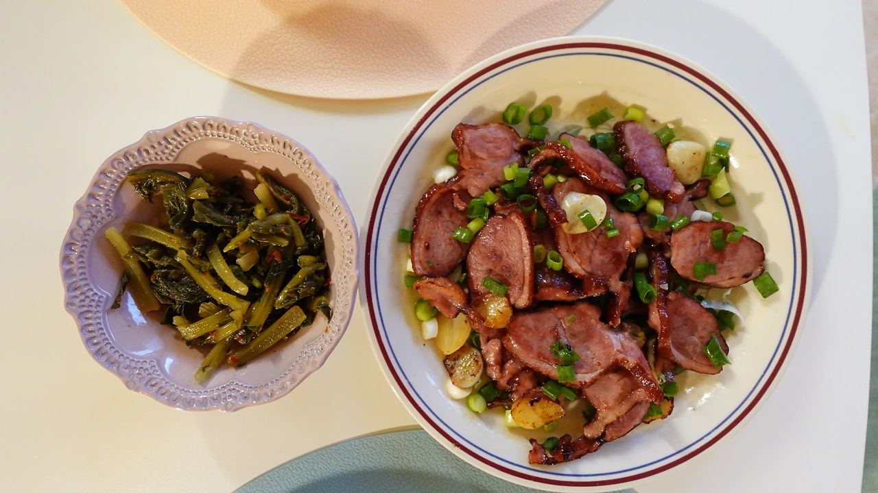 남편) 응, 오리고기 맛있다.